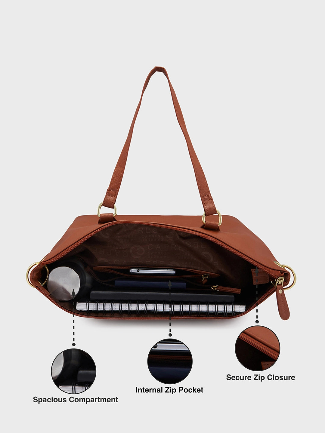 Spacious & Organized: Well-designed interior with multiple compartments, pockets, and a back zip to keep your essentials organized and easily accessible.