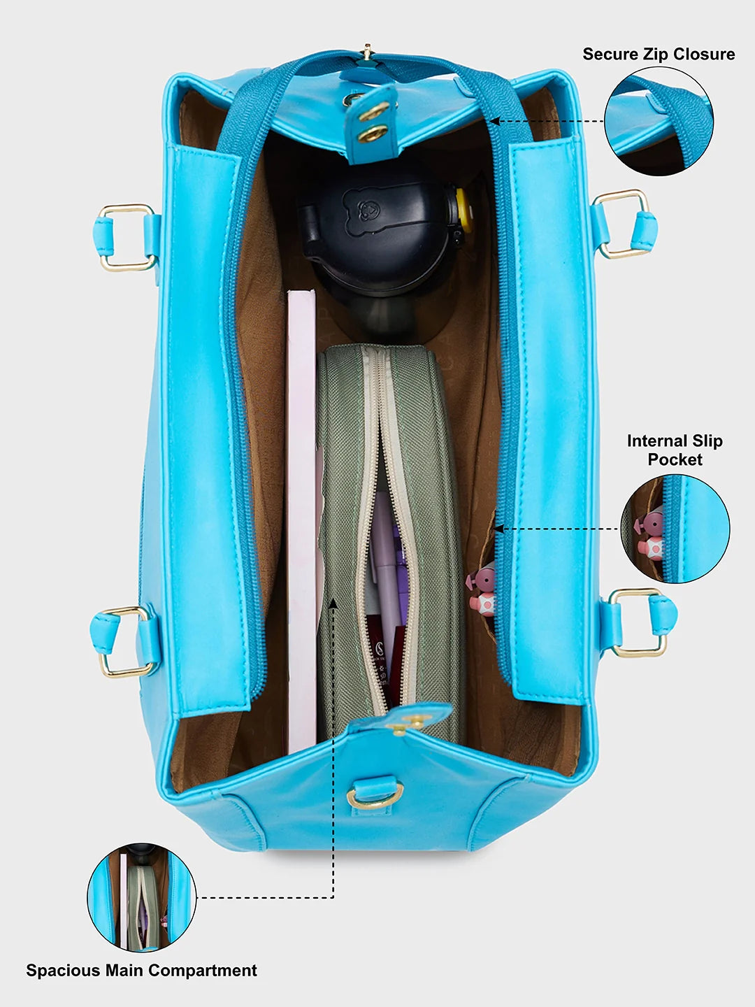 Caprese Augustina Medium Bluish Green Tote Bag