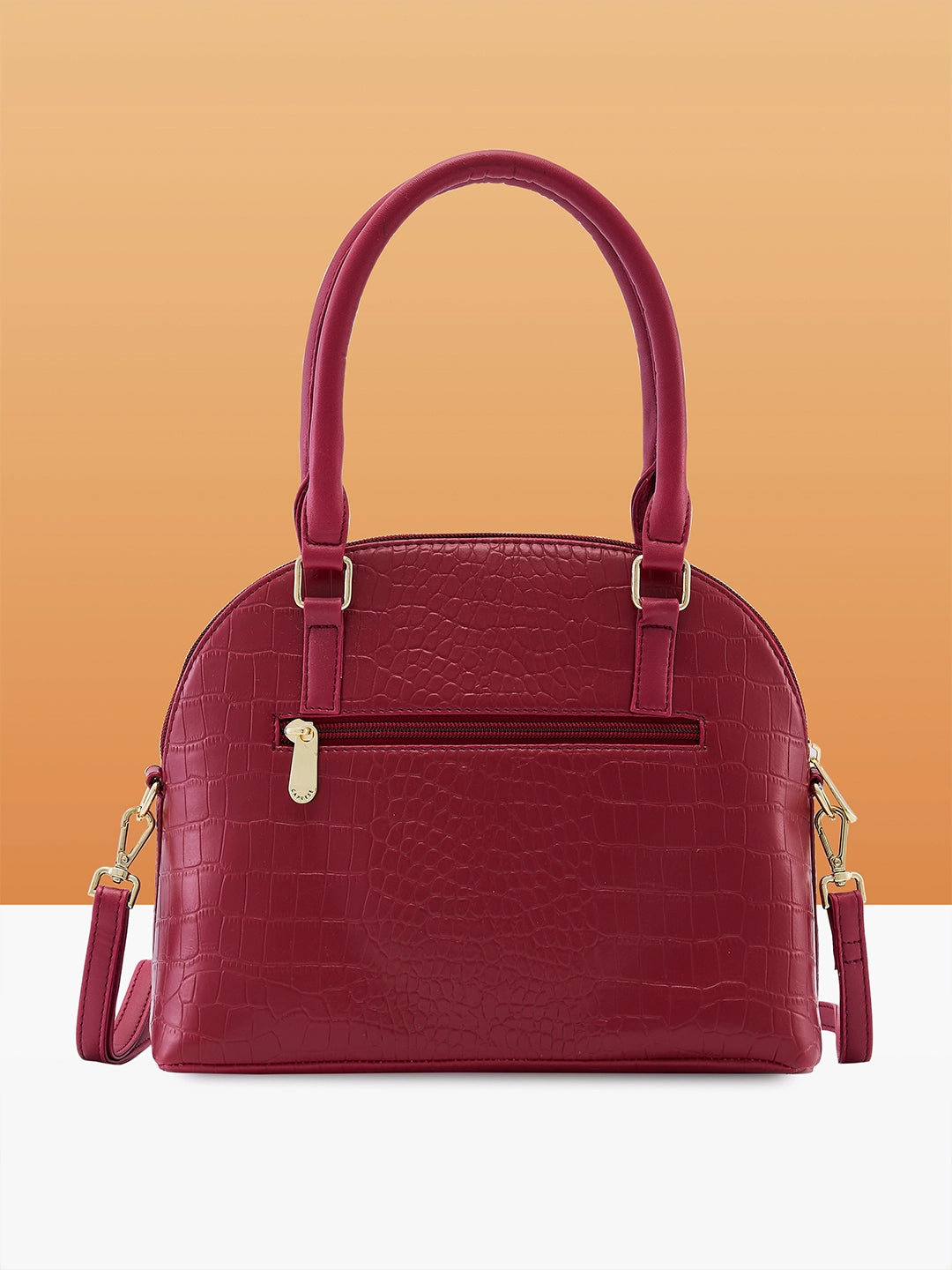 Introducing the Azzura Satchel Small Maroon, a spacious laptop handbag for women featuring a trendy croco finish. This stylish office satchel handbag is perfect for elevating your look this season with its bold design. The front slip pocket provides easy access to essentials, while the adjustable and detachable sling strap offers convenience. Combining style and functionality, this chic handbag meets all your daily needs, keeping you organized and fashionable. Perfect as a laptop bag for women, the Azzura Satchel ensures you stay chic and professional.