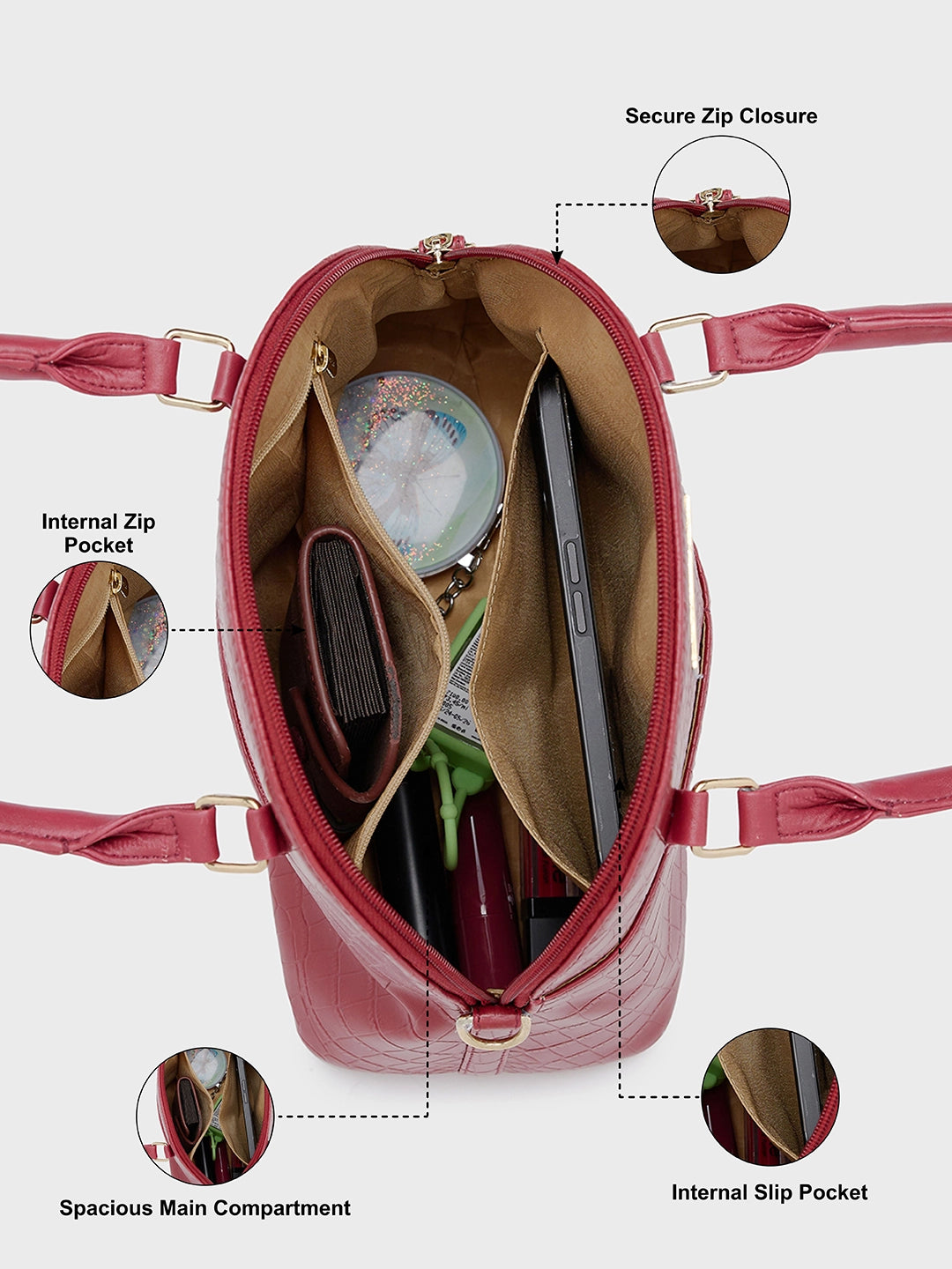 The internal zip pocket helps organize all your essentials for office and daily use. Whether you need a reliable office bag or a functional college bag, this handbag for women ensures your items are neatly stored and easily accessible. A must-have for women on the go, combining convenience with elegance.