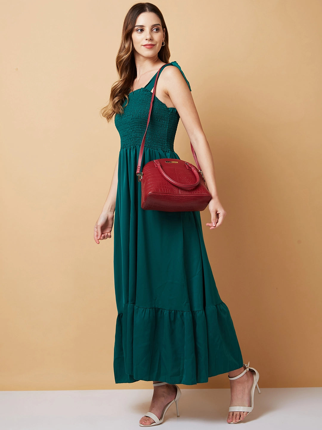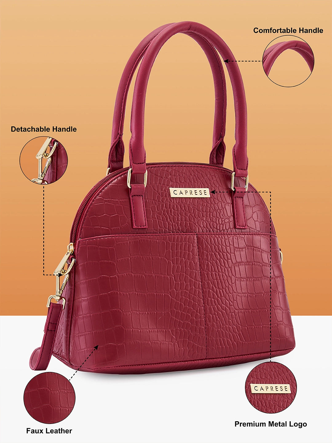 The Caprese handbag features a detachable and adjustable sling strap, offering versatility. Use it as a chic office bag or a comfortable college bag. This laptop handbag for women is designed to provide both style and functionality, making it a standout choice among hand bags for women.