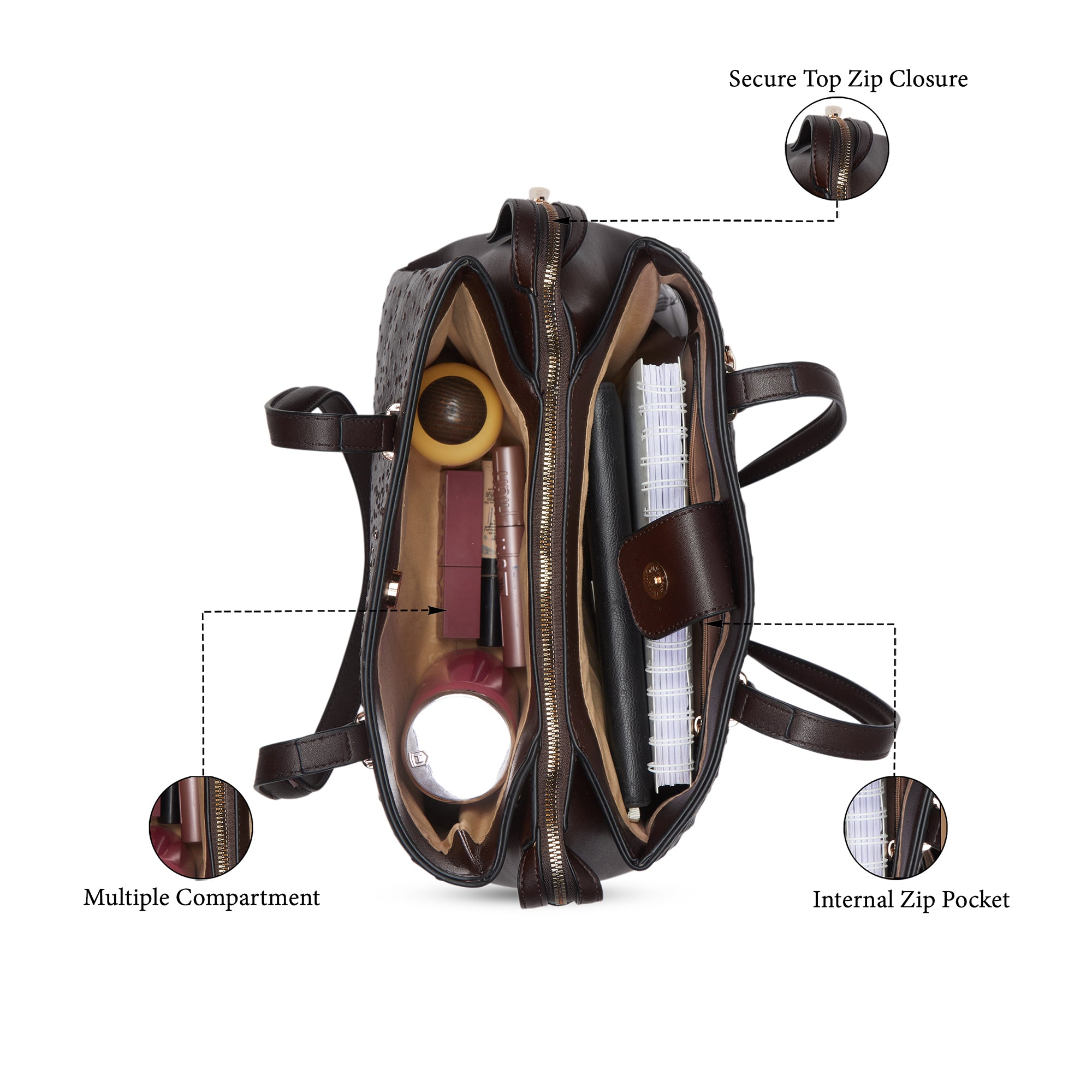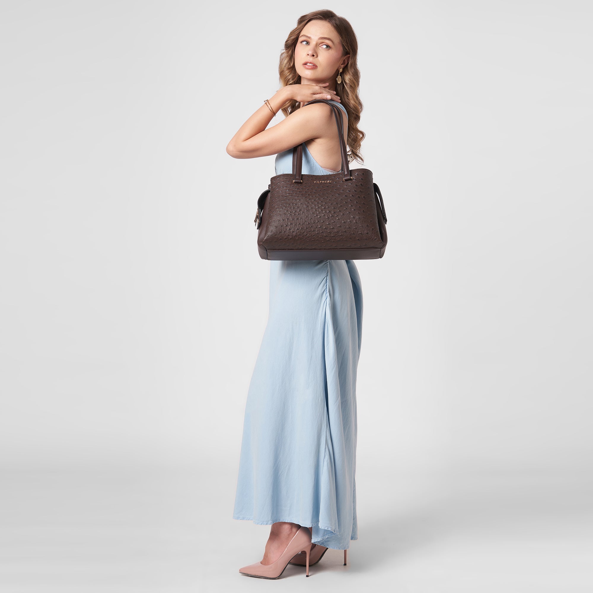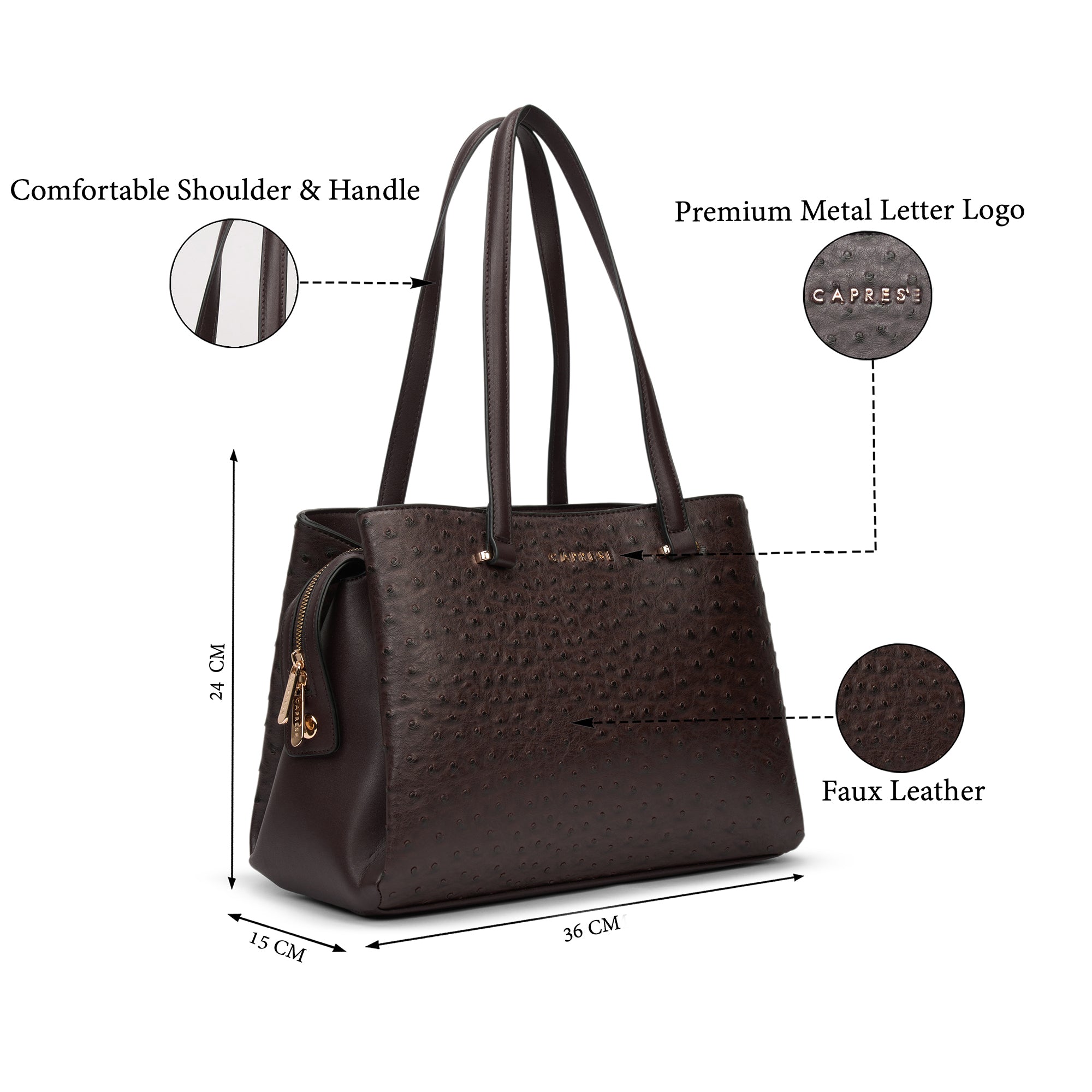 Upgrade your everyday style with the Caprese Britney Large Satchel Shoulder Bag, a perfect blend of fashion and functionality. Designed in premium faux leather with a trendy animal texture, this spacious handbag is ideal for carrying all your daily essentials. The dual closure system with a secure zipper and magnetic button ensures easy access while keeping belongings safe. With sturdy top handles and a sleek silhouette, it transitions effortlessly from office meetings to casual outings. Whether used as a work bag, travel tote, or statement handbag, the Caprese Britney Satchel adds elegance and versatility to every occasion.