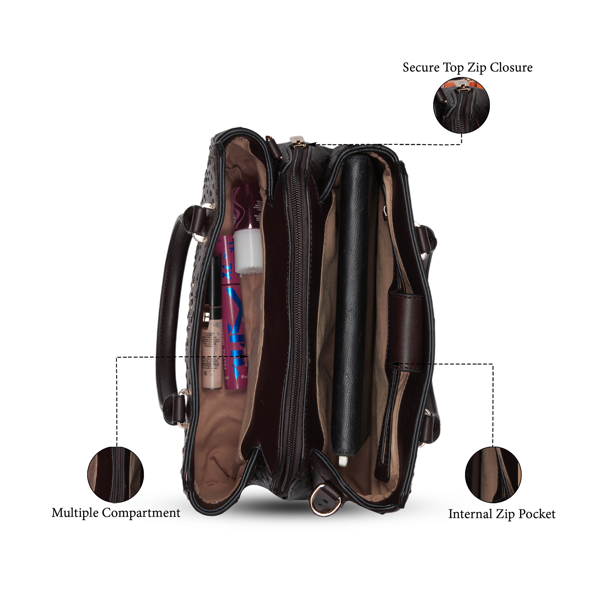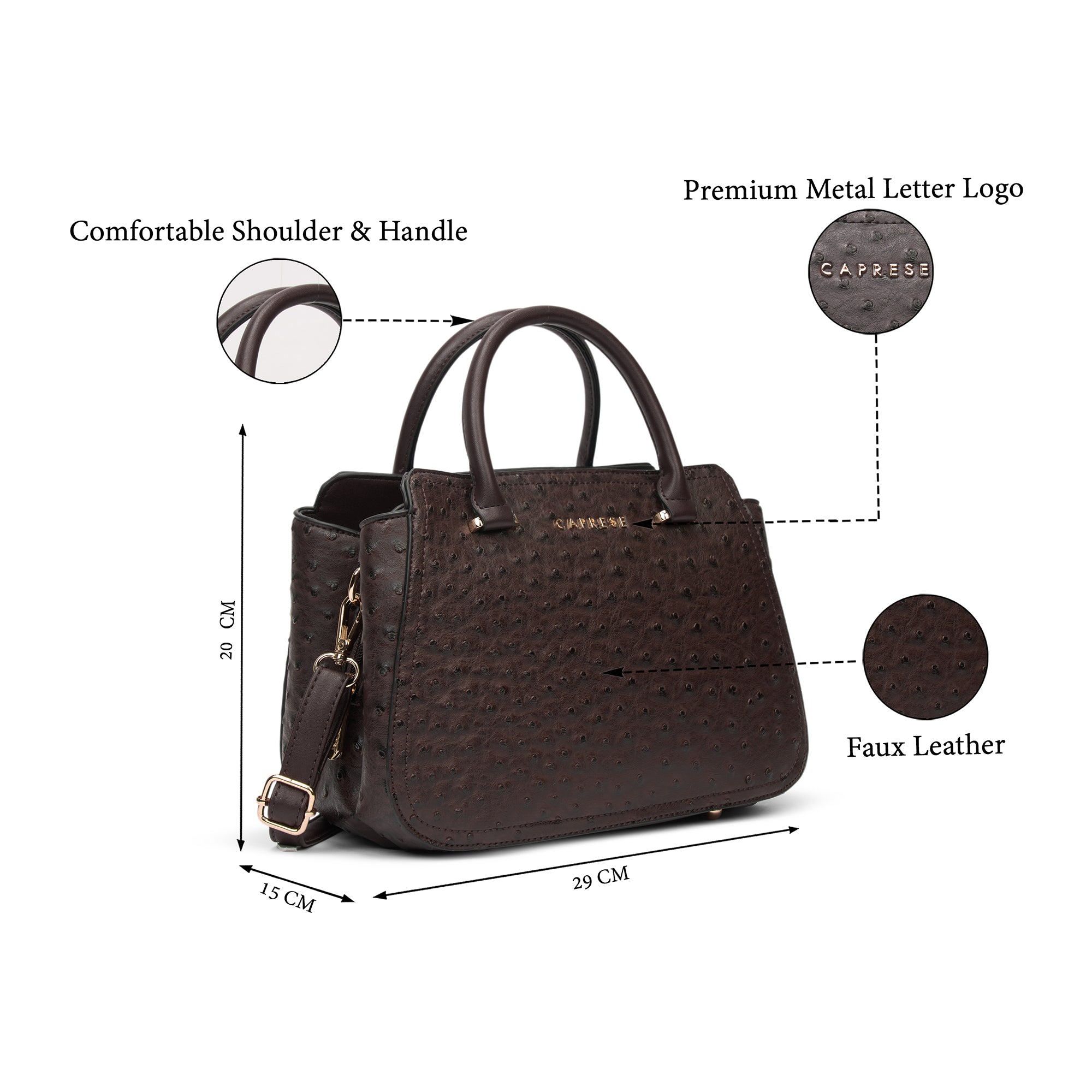 Step out in style with the Caprese Britney Medium Satchel, designed for women who love fashion with function. Crafted in premium faux leather with a chic animal texture, this handbag offers a stylish upgrade to your everyday look. The adjustable & detachable strap gives you the freedom to carry it as a shoulder bag, crossbody, or elegant satchel. Featuring a secure zipper and magnetic button closure, it keeps your essentials safe while providing easy access. Perfectly sized to carry your wallet, phone, makeup, and small accessories, this satchel transitions seamlessly from office meetings to casual outings or evening events. A versatile fashion essential for every wardrobe.