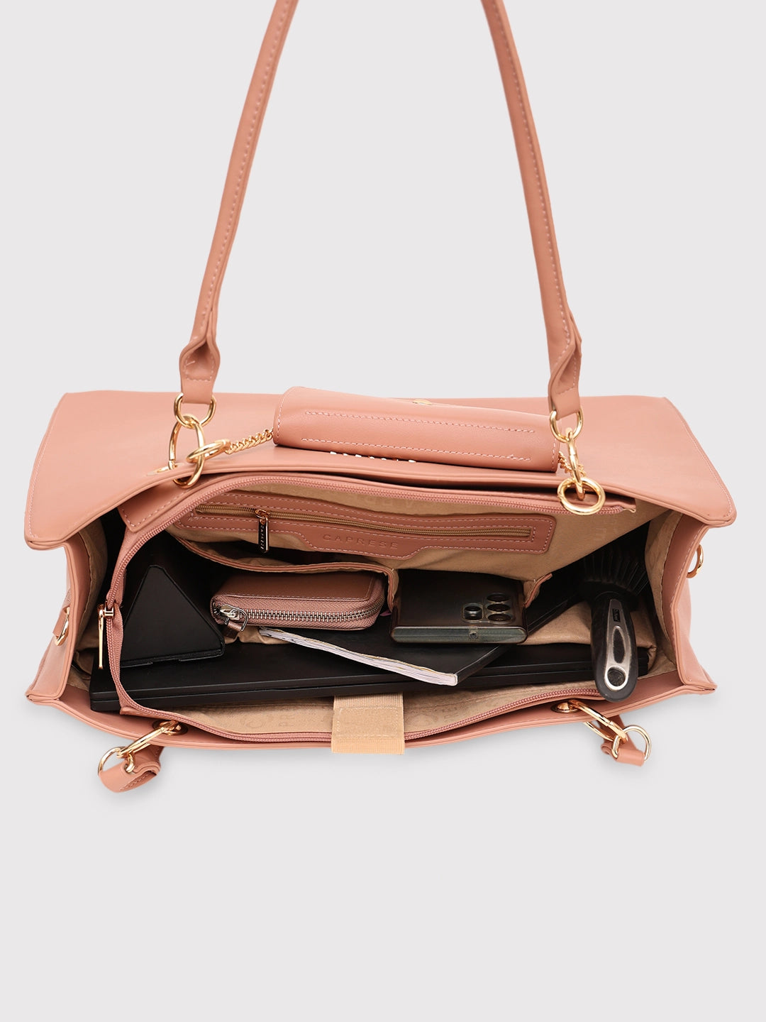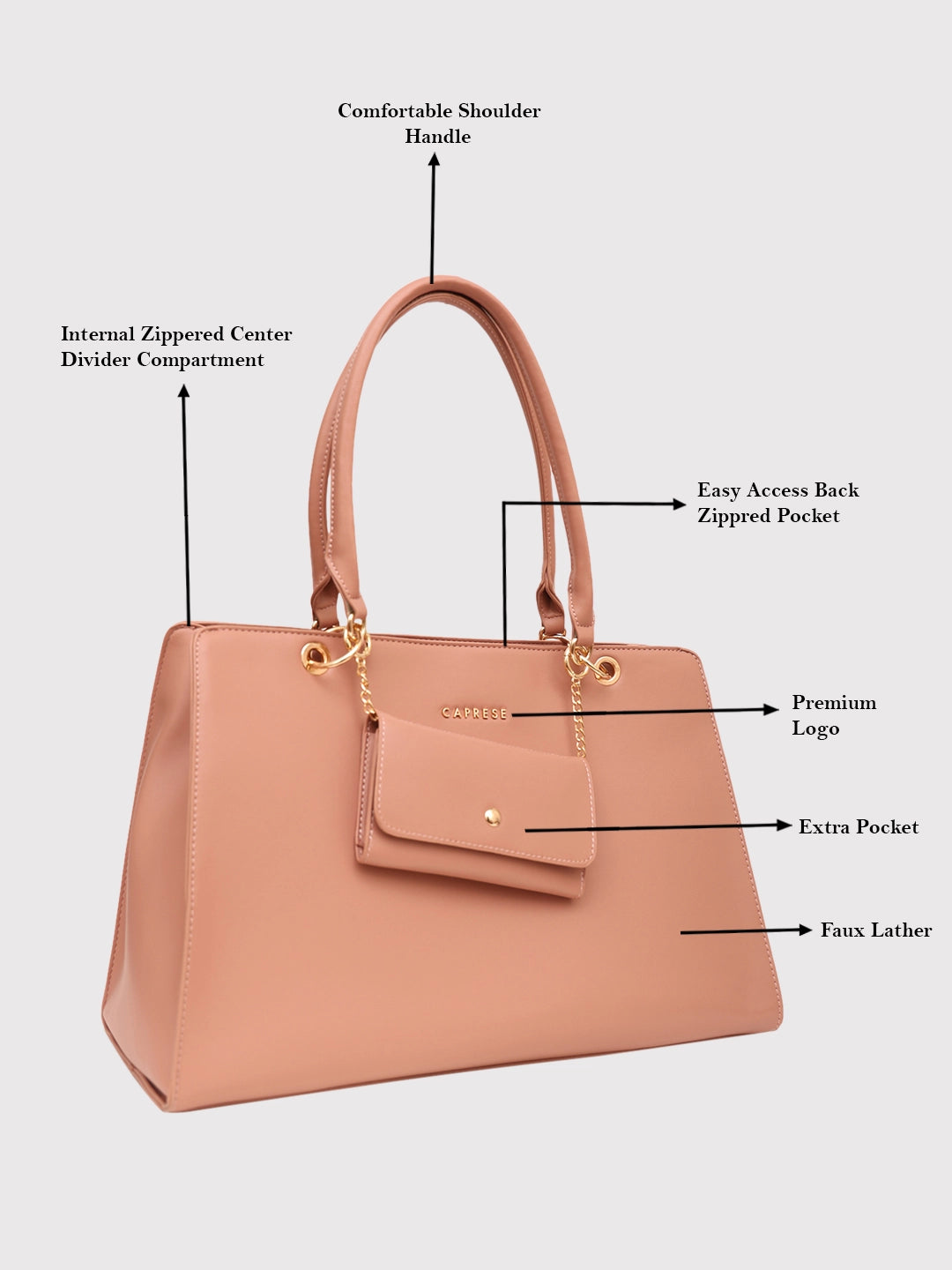 Our bag is made of Faux leather with spacious interior and organized pocket inside to carry essentials