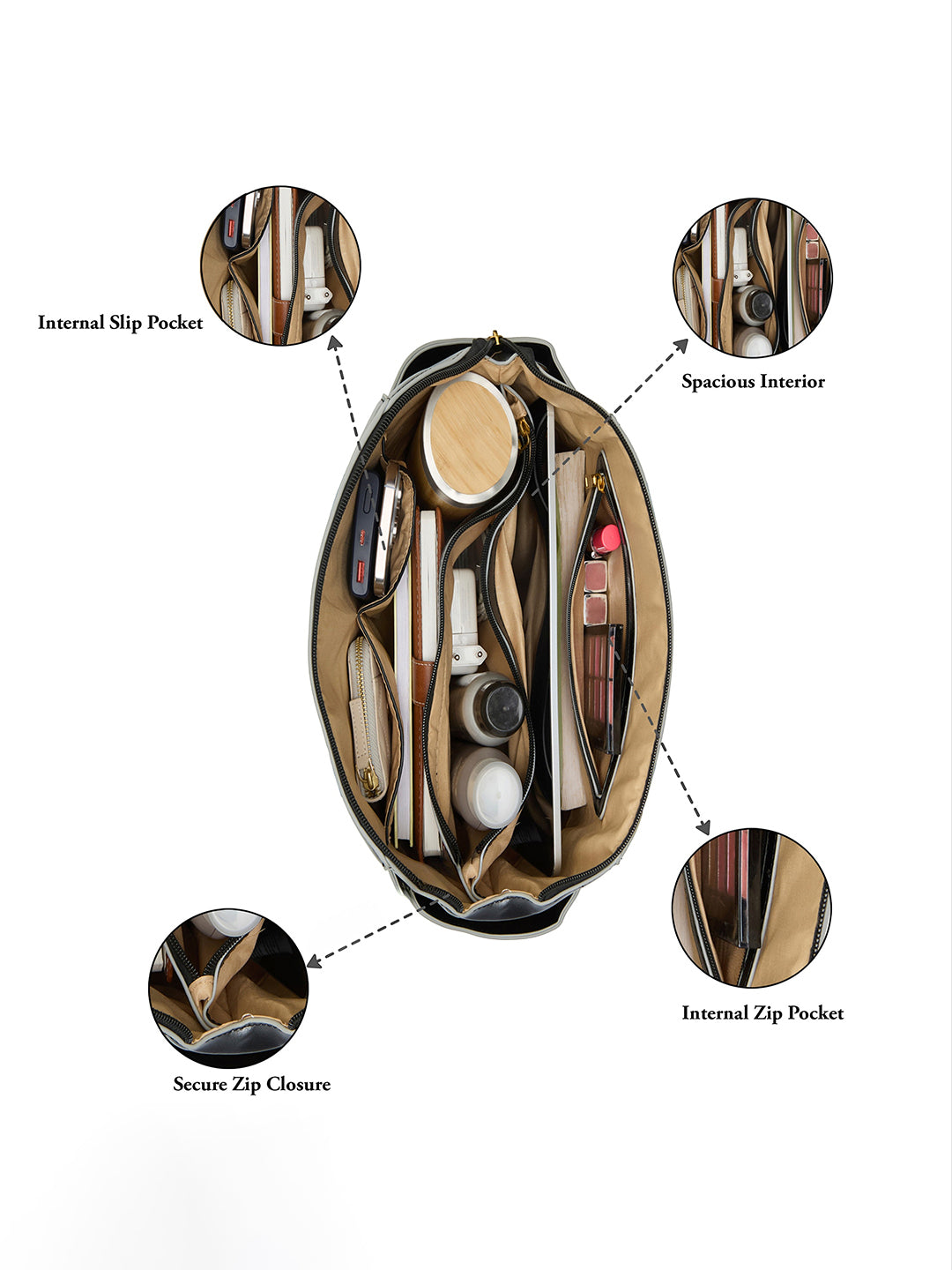 Large Capacity & Structured Design: Offers spacious interiors, ideal for professionals and commuters, with a structured shape that maintains elegance even when full.