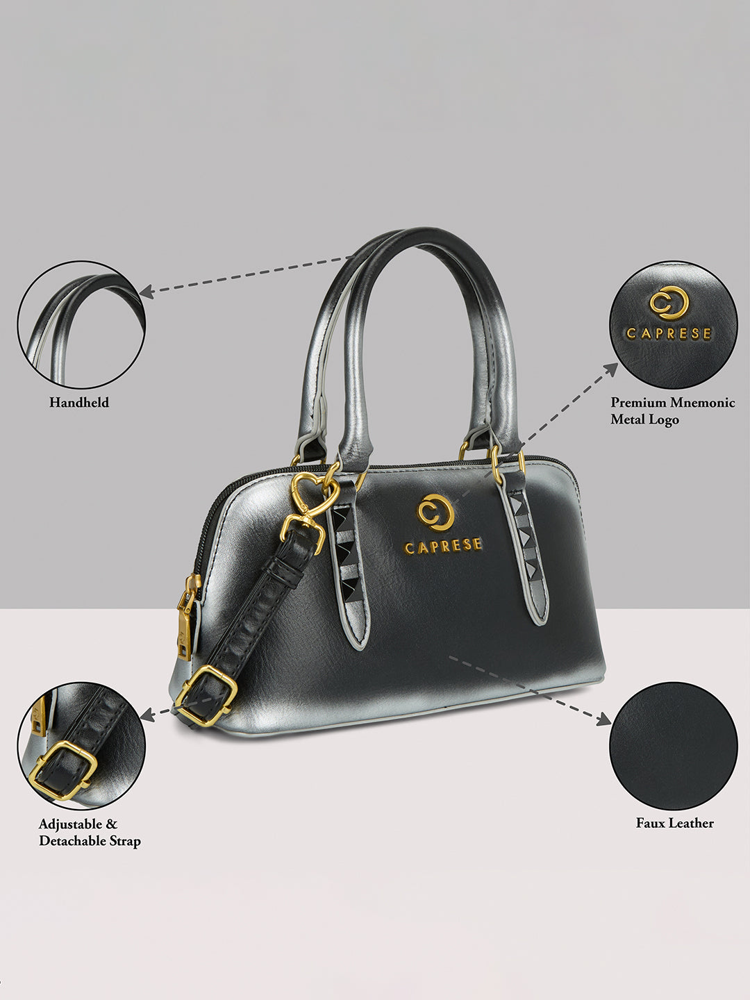 Introducing the Caprese DEE Small Satchel, the perfect blend of compact style and smart utility. This versatile bag is crafted from premium, cruelty-free faux leather and features a modern, eye-catching ombre effect combined with a classic solid pattern.
