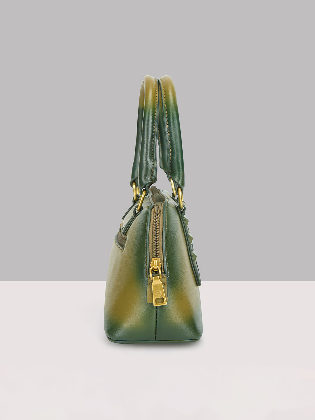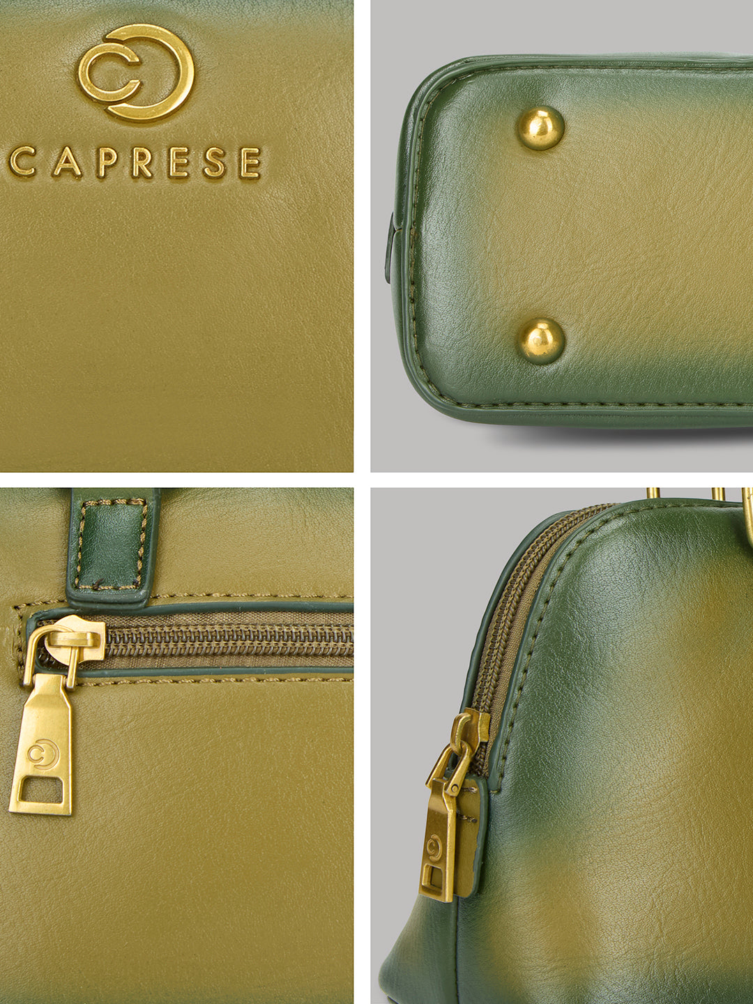 Introducing the Caprese DEE Small Satchel, the perfect blend of compact style and smart utility. This versatile bag is crafted from premium, cruelty-free faux leather and features a modern, eye-catching ombre effect combined with a classic solid pattern.