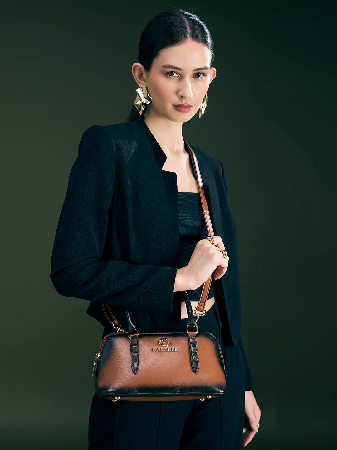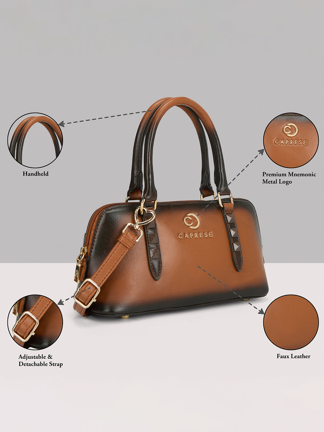 Introducing the Caprese DEE Small Satchel, the perfect blend of compact style and smart utility. This versatile bag is crafted from premium, cruelty-free faux leather and features a modern, eye-catching ombre effect combined with a classic solid pattern.