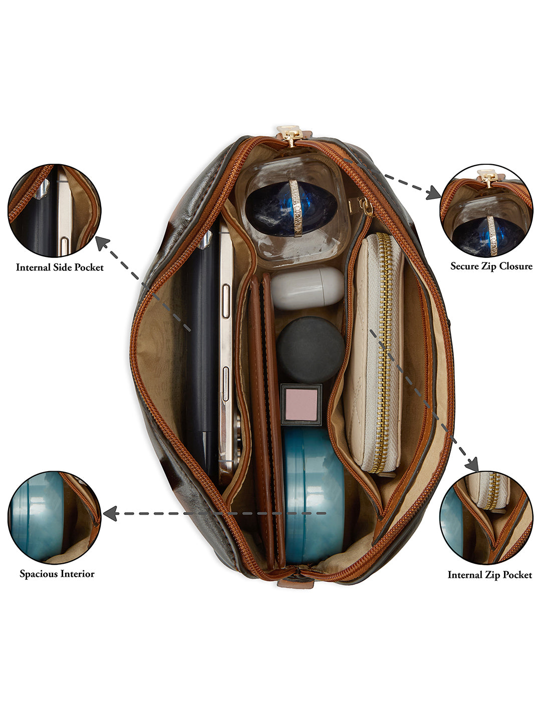 Smart Multi-Compartment Interior: Despite its small size, the bag offers organized storage with dedicated inner pockets and compartments for essentials like keys, phone, and wallet.