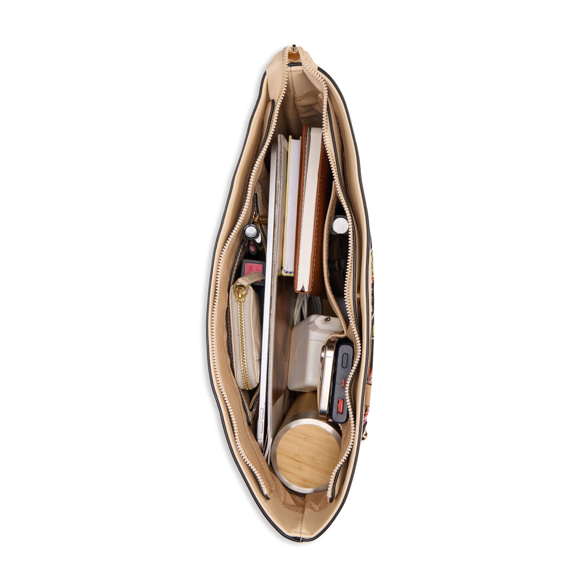 Its large, practical design features multi-compartments and a dual closure system using a main zipper and a convenient magnetic button, ensuring all your belongings are secure. The bag is versatile, easily carried as a comfortable shoulder bag or a classic handheld tote. It's the ideal work bag, college tote, or travel carryall for women who demand both exceptional organization and trending fashion.