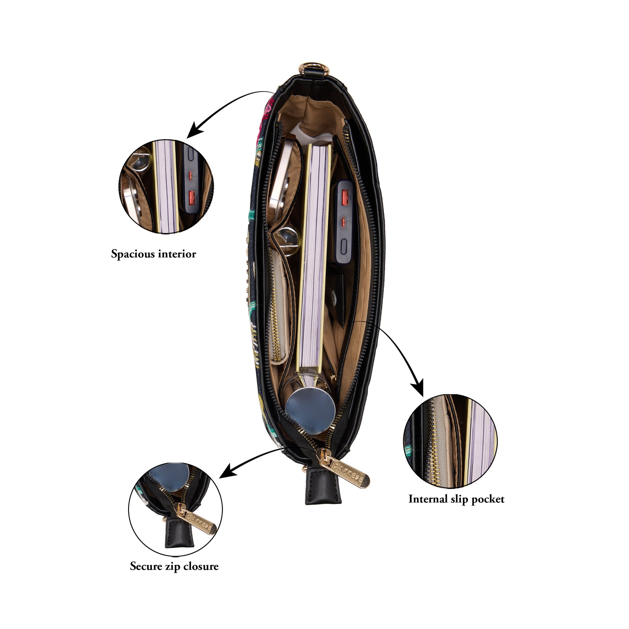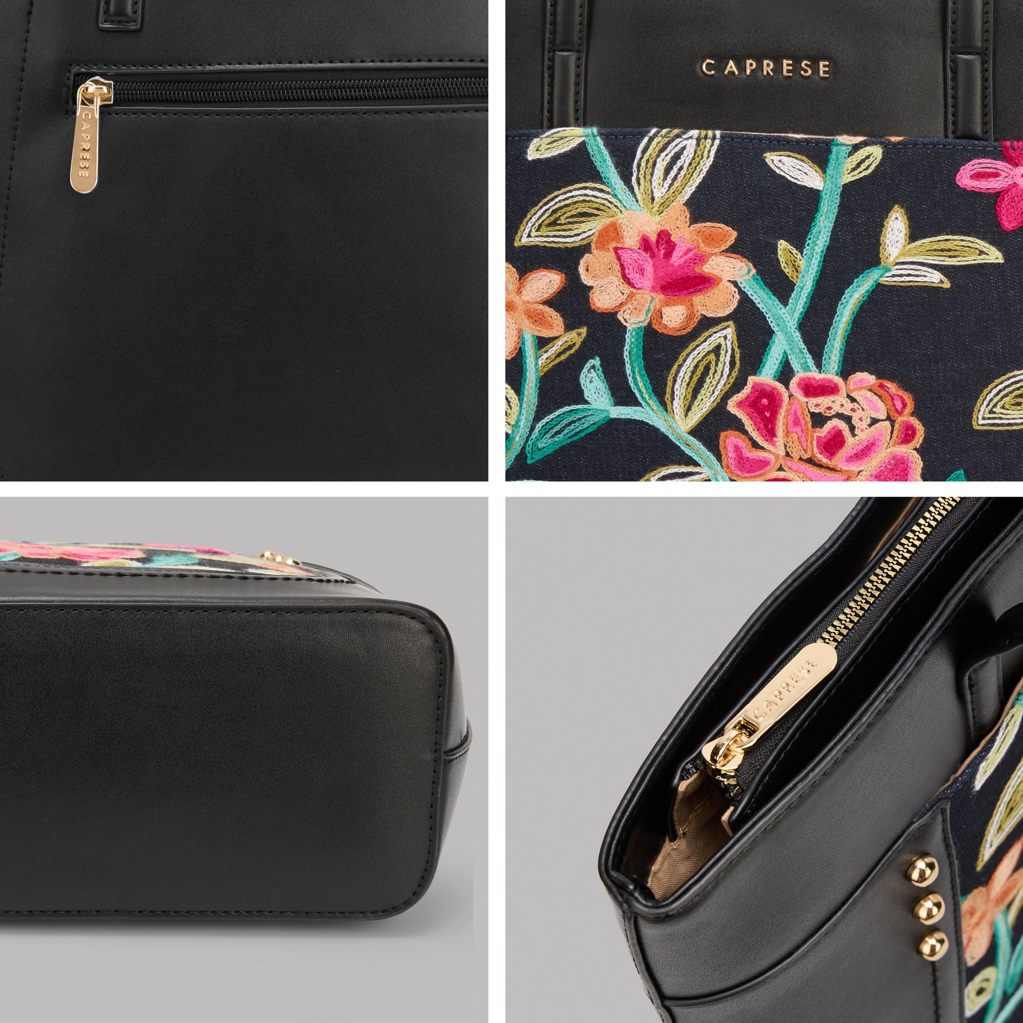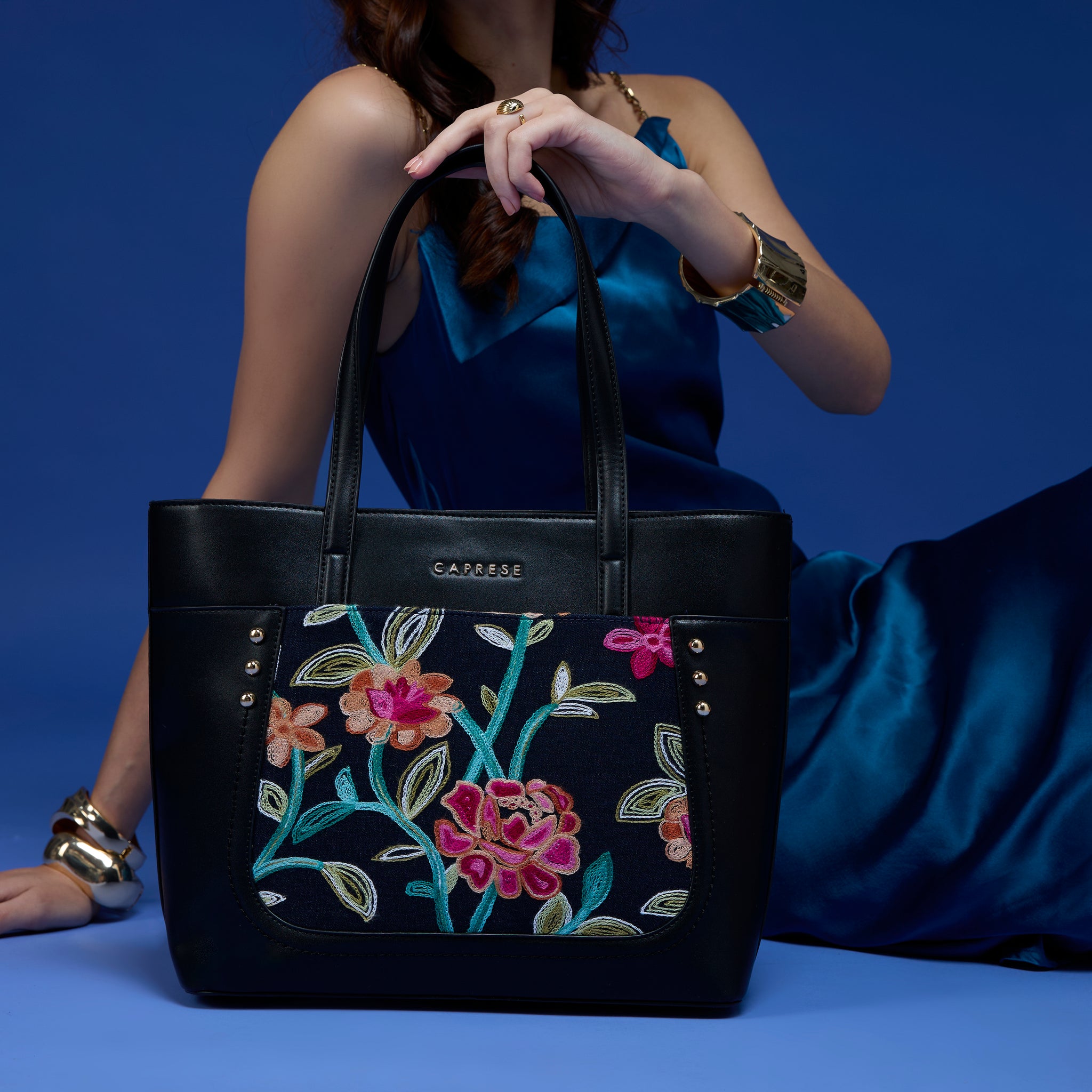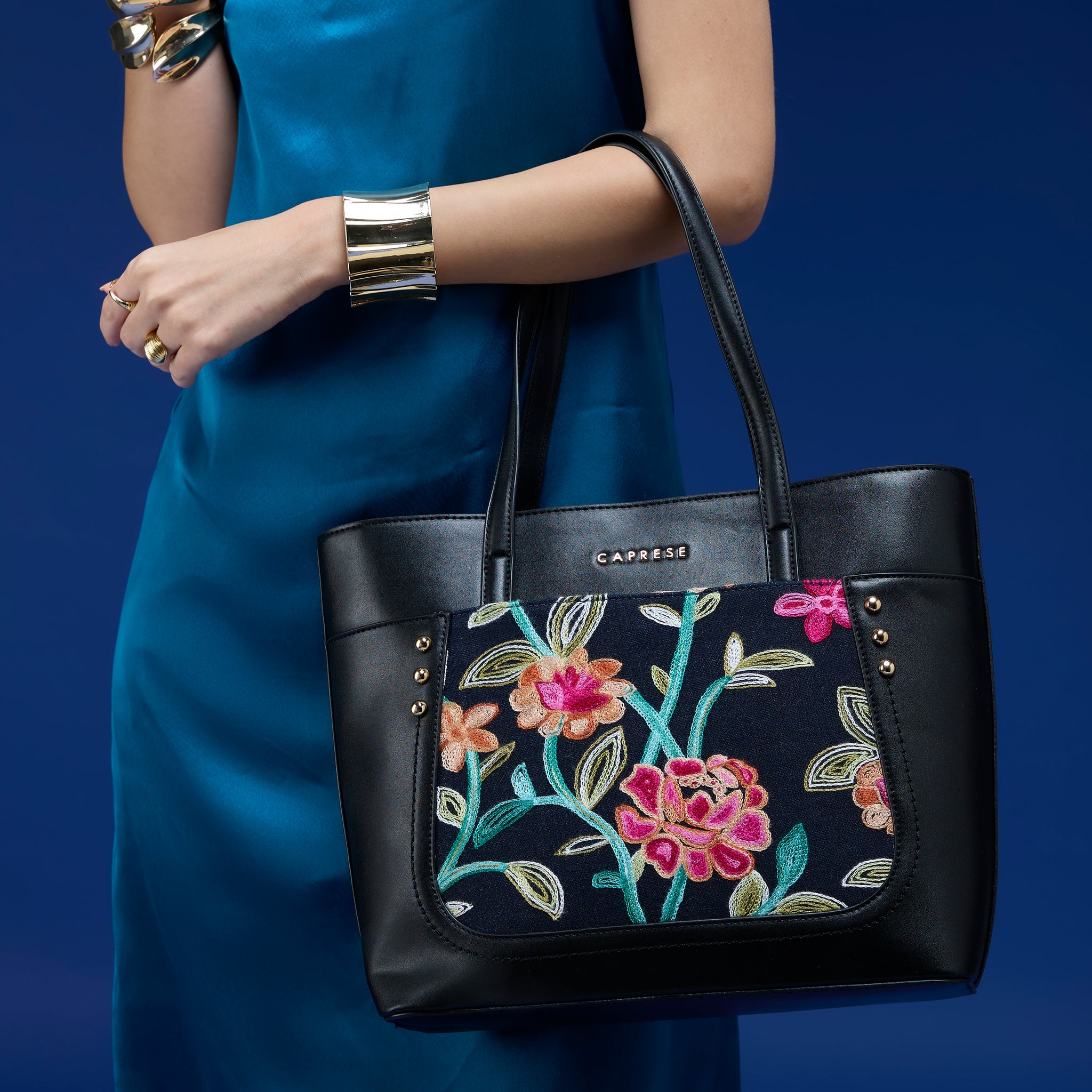 Make a chic statement with the Caprese Elsa Large Tote Bag, the perfect spacious accessory for your professional and travel needs. This stunning tote combines a classic solid color panel with sophisticated, intricate embroidery, providing a unique designer look. Crafted from premium faux leather, the bag delivers a luxurious feel while being completely cruelty-free and durable for daily commuting.