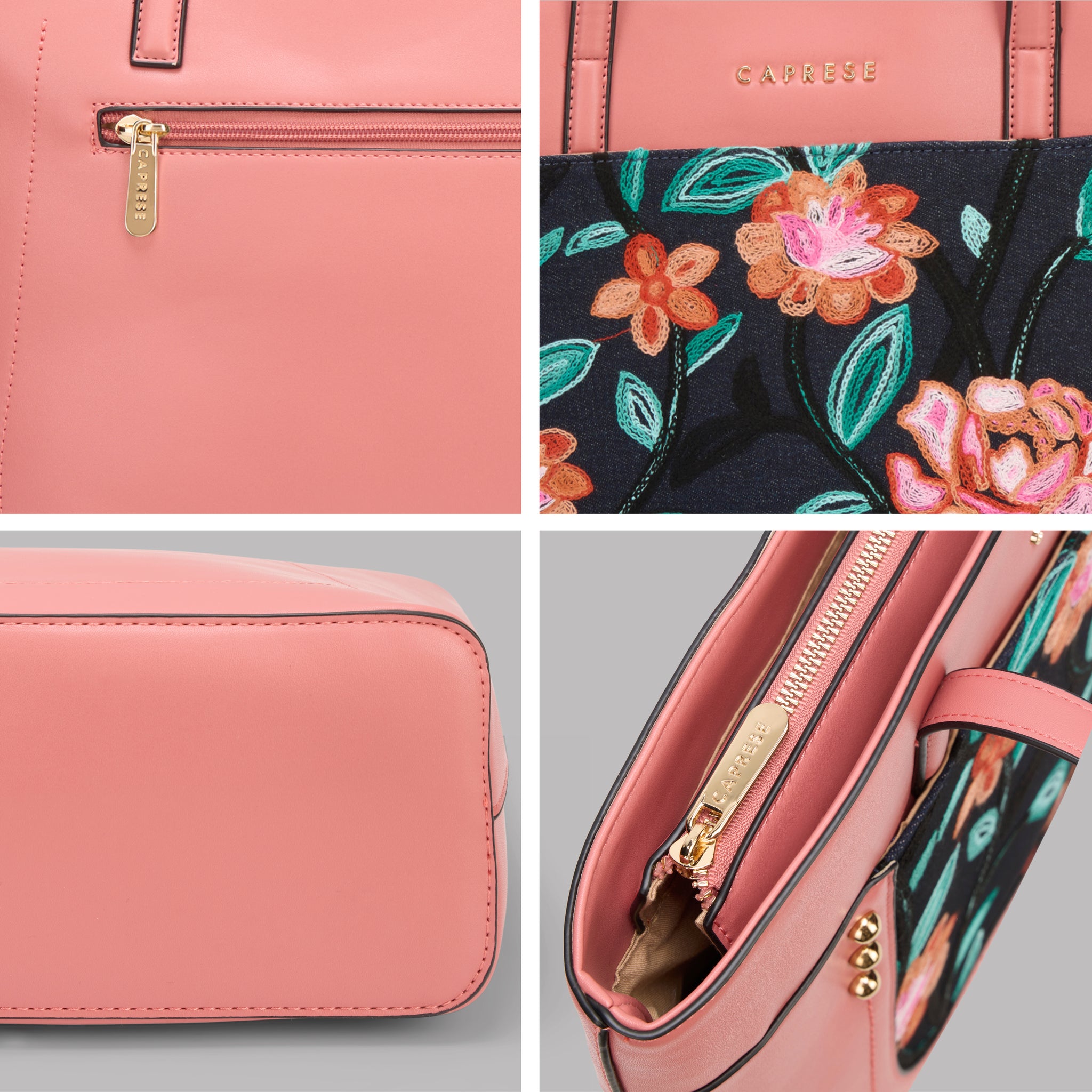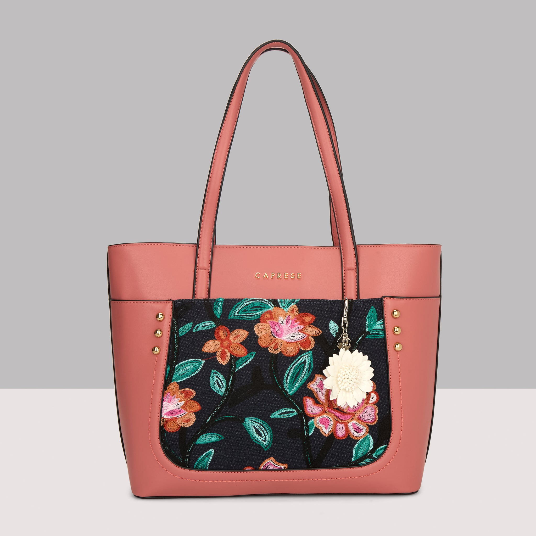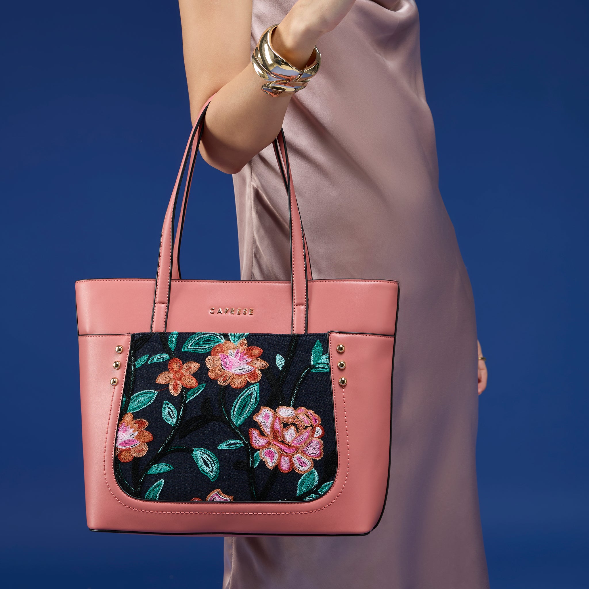 Make a chic statement with the Caprese Elsa Large Tote Bag, the perfect spacious accessory for your professional and travel needs. This stunning tote combines a classic solid color panel with sophisticated, intricate embroidery, providing a unique designer look. Crafted from premium faux leather, the bag delivers a luxurious feel while being completely cruelty-free and durable for daily commuting.