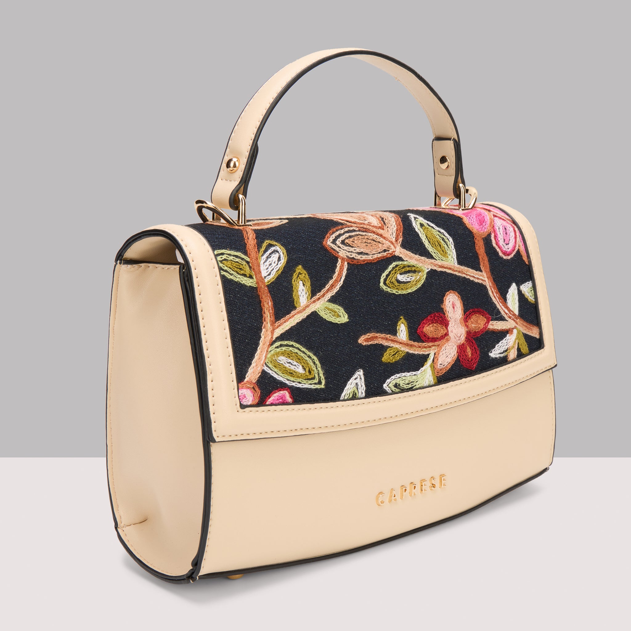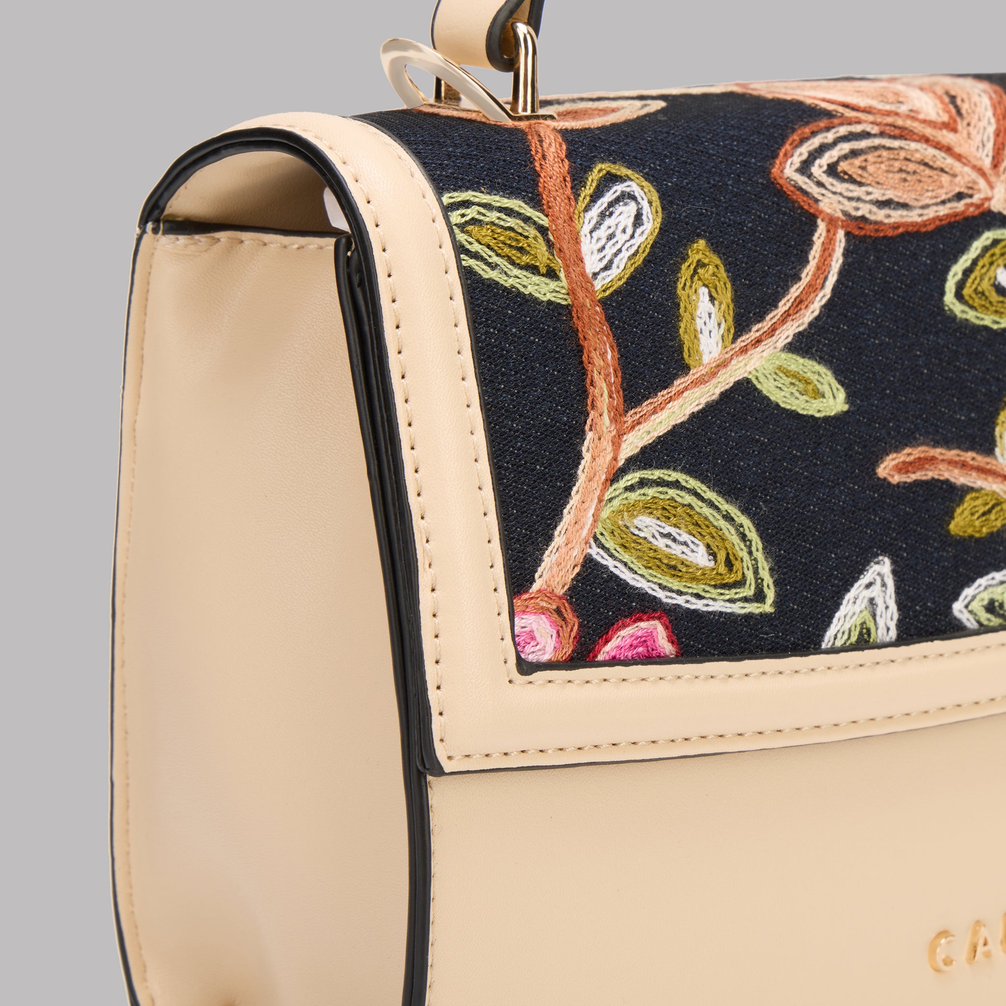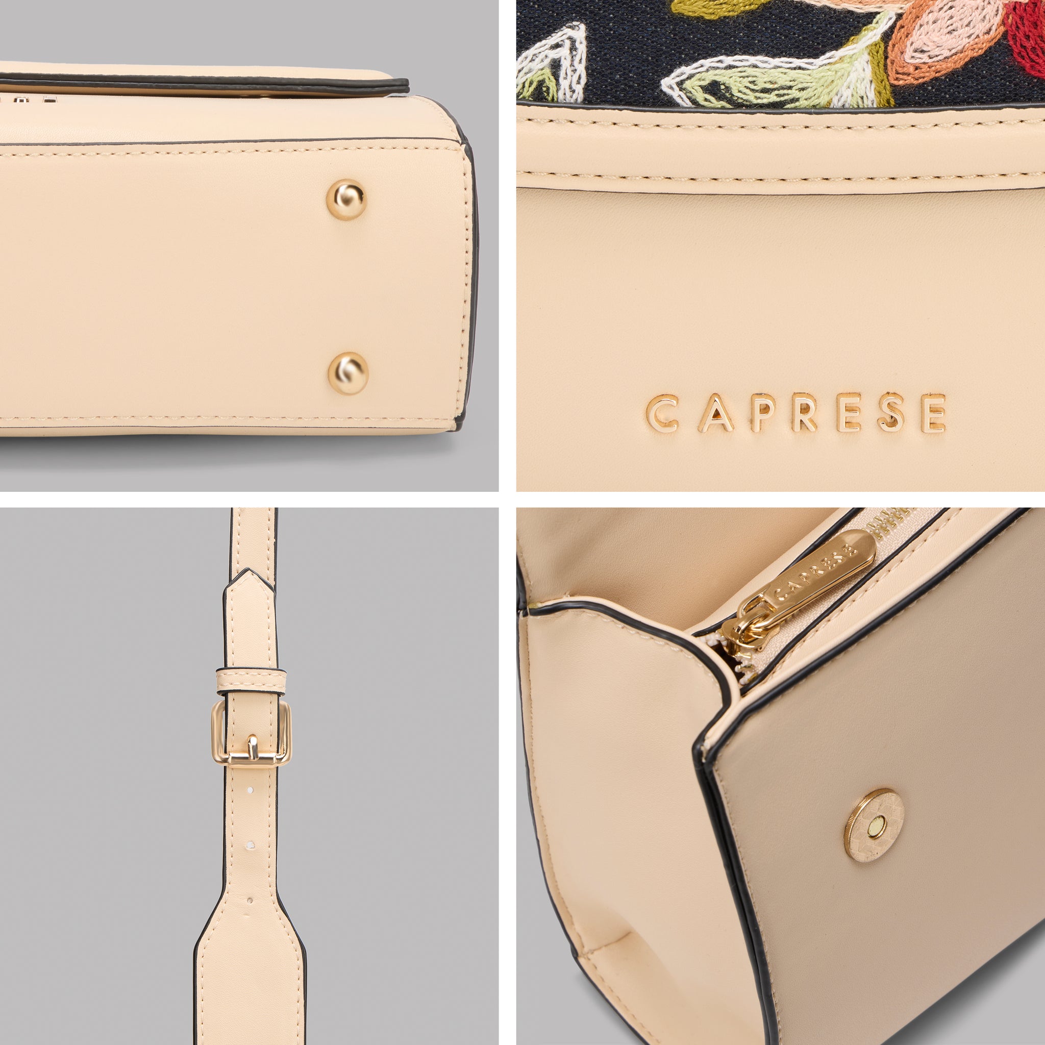 Step out in style with the Caprese Elsa Medium Sling Bag, the perfect hands-free accessory for your daily adventures. This sling combines a stylish solid background with intricate, designer embroidery detail, giving you a unique and fashionable look. Crafted from premium faux leather, the bag offers a luxurious, cruelty-free finish that is durable for everyday use.