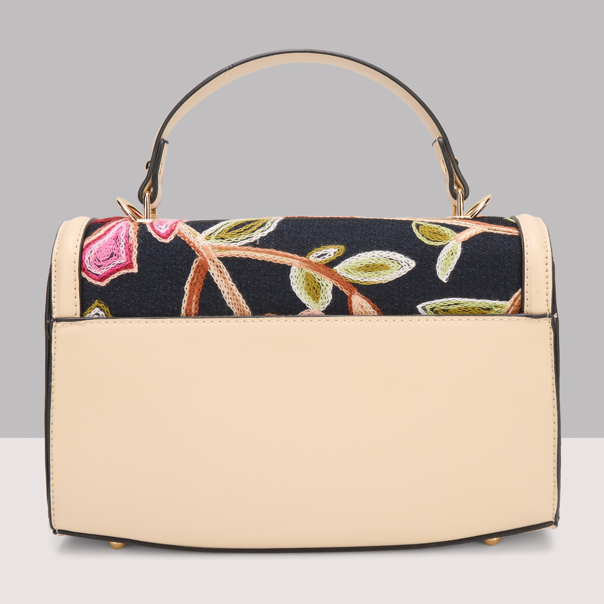 Chic Embroidered Design: Features a trendy blend of solid faux leather and sophisticated embroidery, providing a unique and stylish designer look for any woman.
