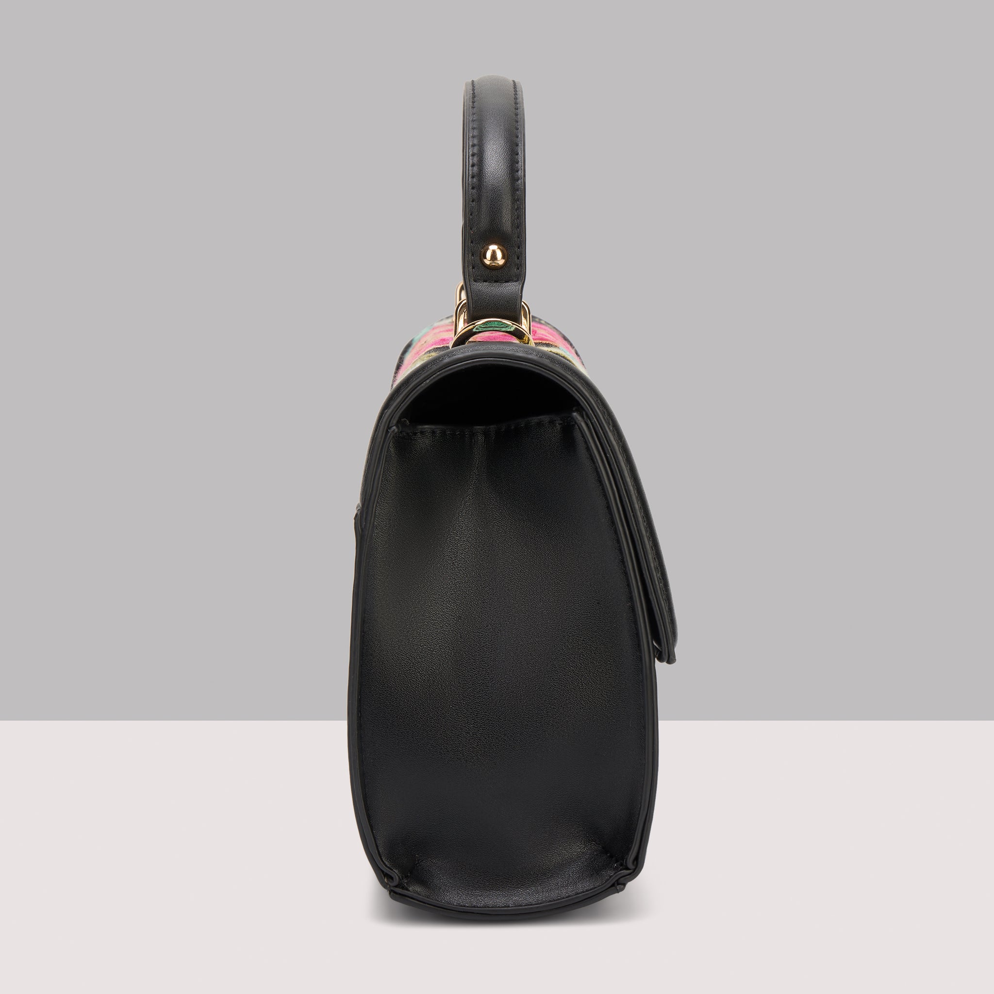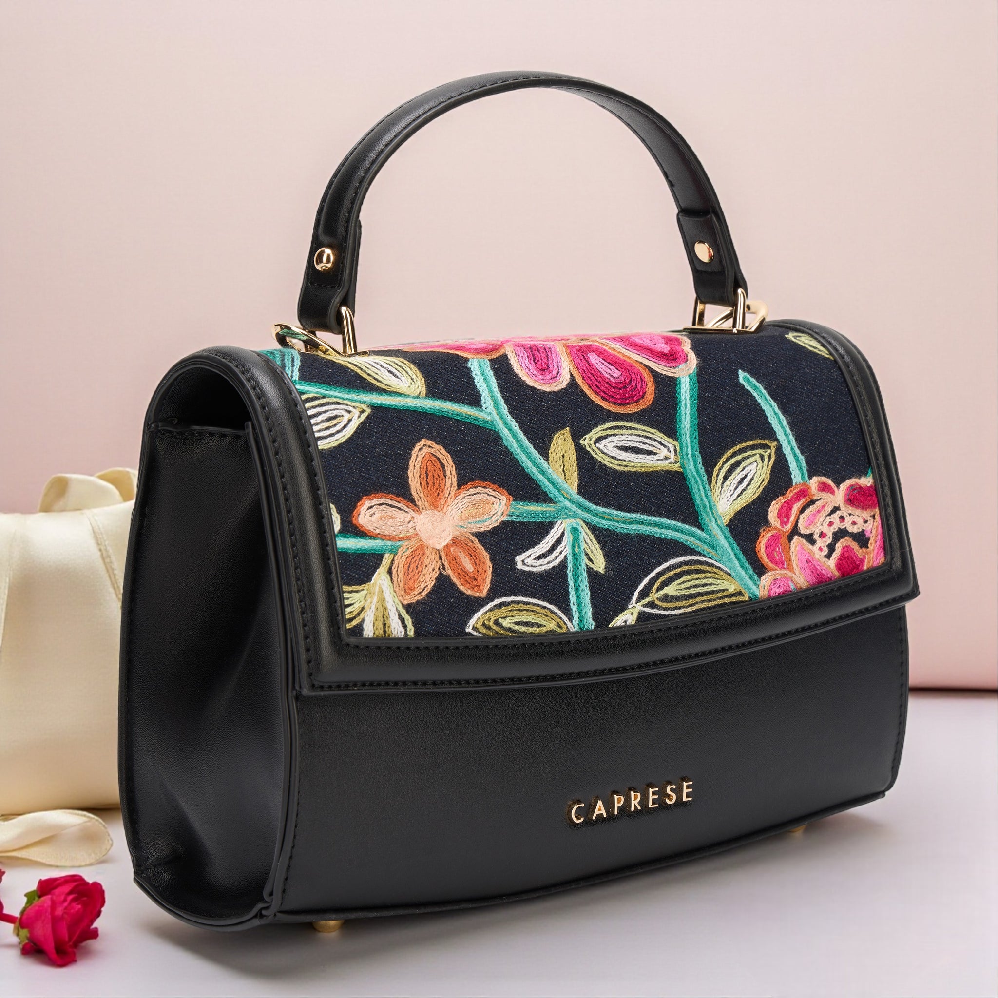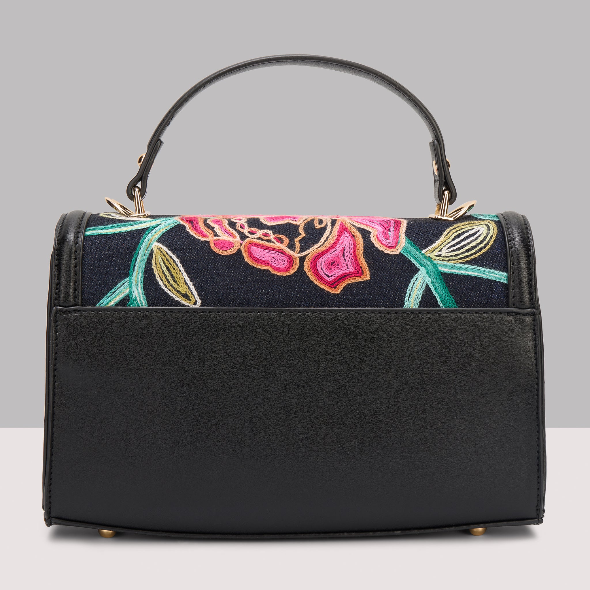 Chic Embroidered Design: Features a trendy blend of solid faux leather and sophisticated embroidery, providing a unique and stylish designer look for any woman.