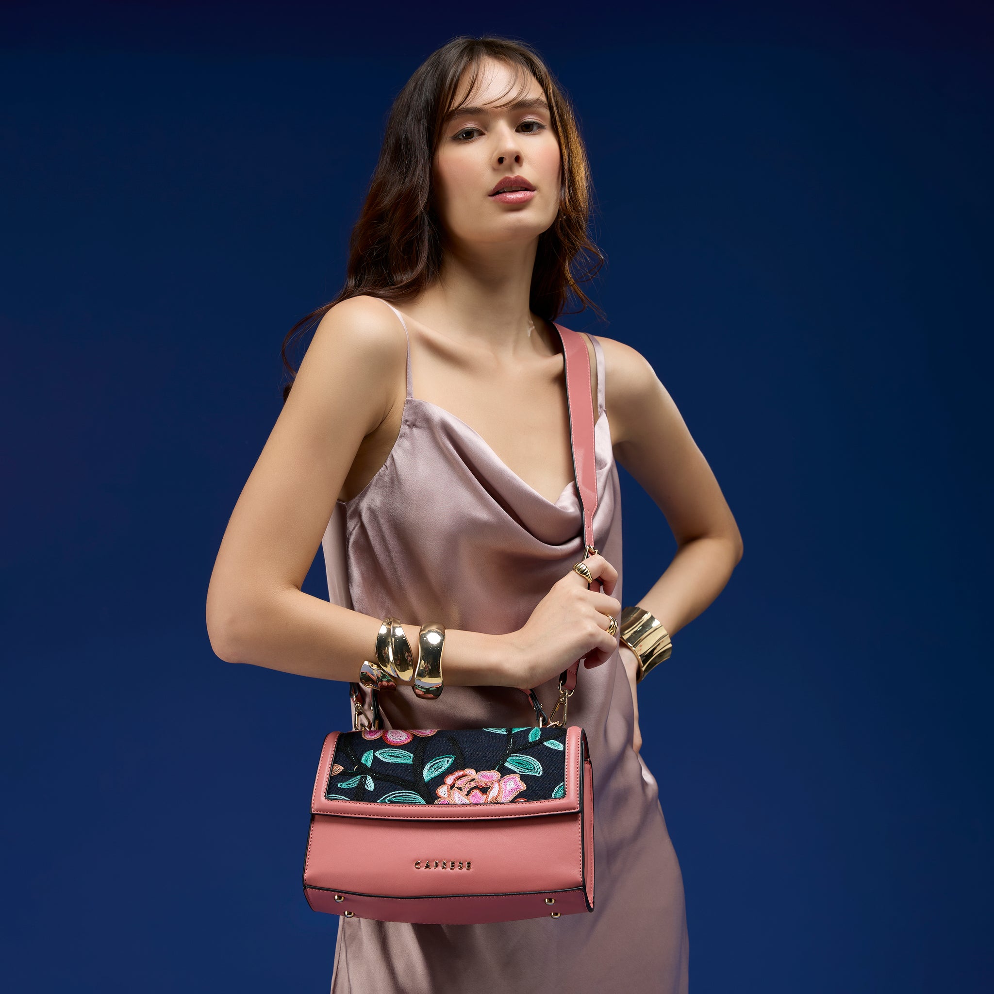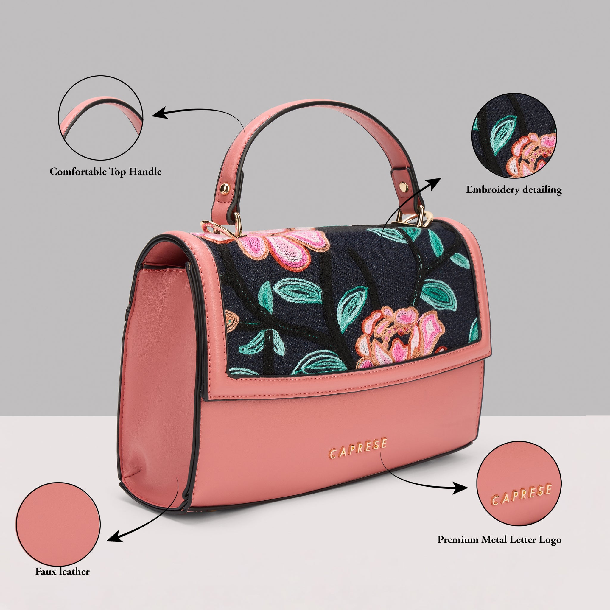 Discover effortless elegance with the Caprese Elsa Medium Satchel, the ultimate multi-functional handbag for the modern woman. This stunning satchel combines a classic solid color with beautiful, intricate embroidery, offering a unique and sophisticated designer look. Crafted from premium faux leather, the bag provides the luxury feel of leather while remaining cruelty-free and durable for everyday wear.