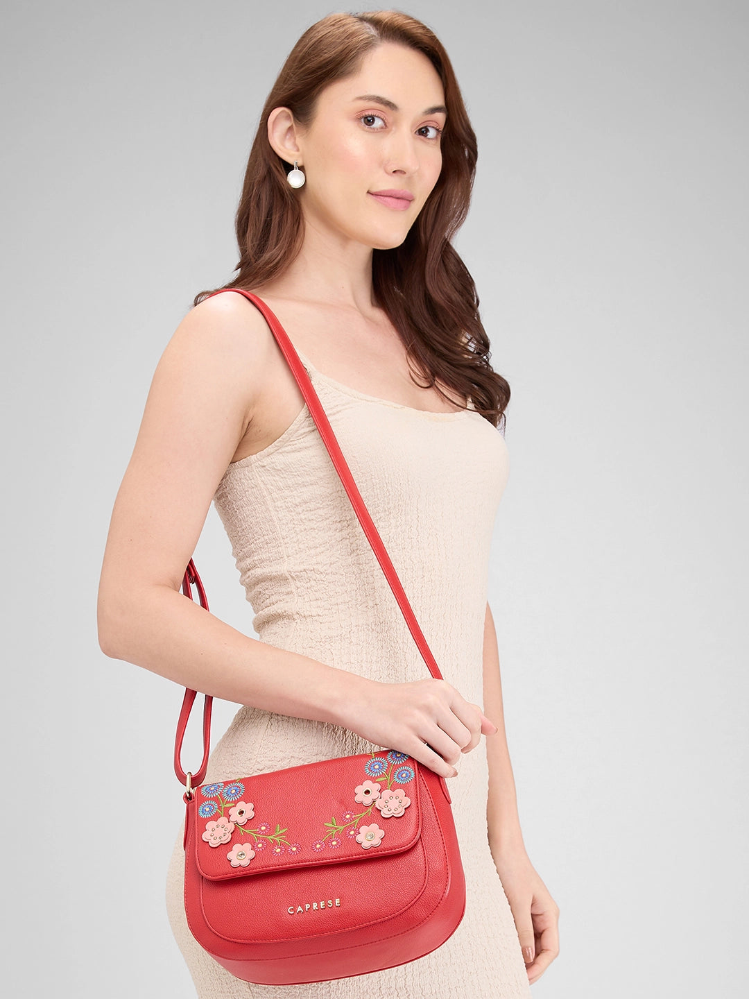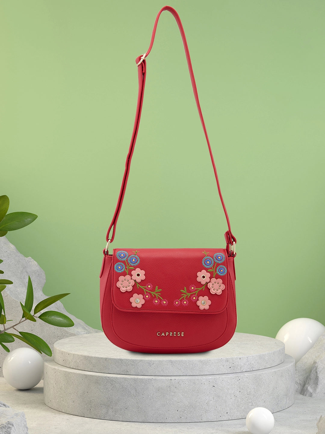 Caprese Erica Medium Embroidered Maroon Sling Bag
