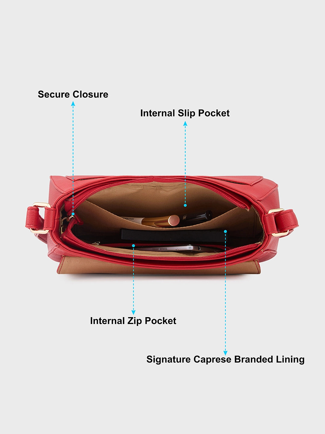 The Caprese Erica Sling Medium Women's Stylish Bag is a perfect blend of fashion and functionality. With its sleek design and premium craftsmanship, this sling bag adds a touch of sophistication to any outfit. The medium size offers just the right amount of space to carry your essentials, whether you're running errands or heading out for a night on the town. Crafted from high-quality materials, the Erica sling bag is both durable and stylish, making it the perfect accessory for the modern woman. The adjustable strap allows for comfortable wear, while the versatile design effortlessly transitions from day to night. Elevate your look with the Caprese Erica Sling Bag, a must-have addition to your wardrobe.