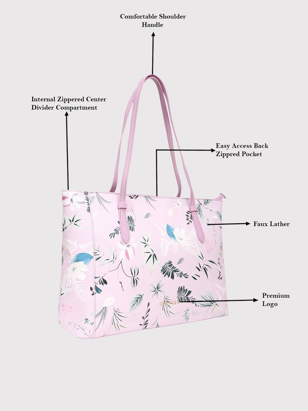 Our bag is made of Faux leather with spacious interior and organized pocket inside to carry essentials