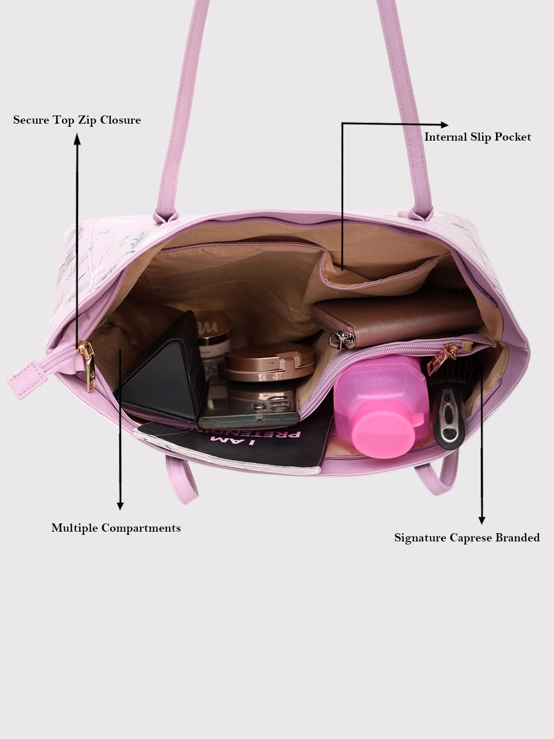 Caprese Gemma Floral Printed Large Purple Tote Bag
