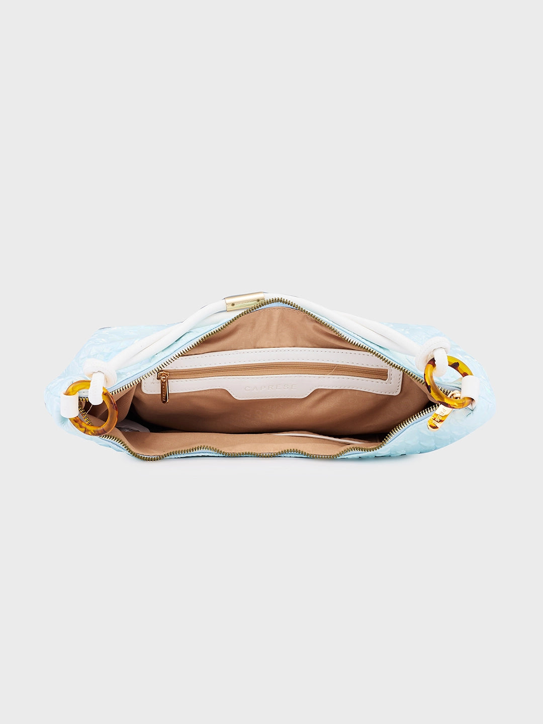 Introducing the Caprese Josie Hobo Handbag in Large, a chic shoulder bag with a trendy new shape. This stylish hobo handbag features a spacious interior with a convenient back zip, perfect for keeping all your essentials organized. The bold black color adds a touch of sophistication to your outfit, making it ideal for office, daily use, and travel adventures. Combining elegance and functionality, this trendy handbag is designed to meet all your daily needs while ensuring you look chic and organized. Perfect for women seeking both style and practicality.