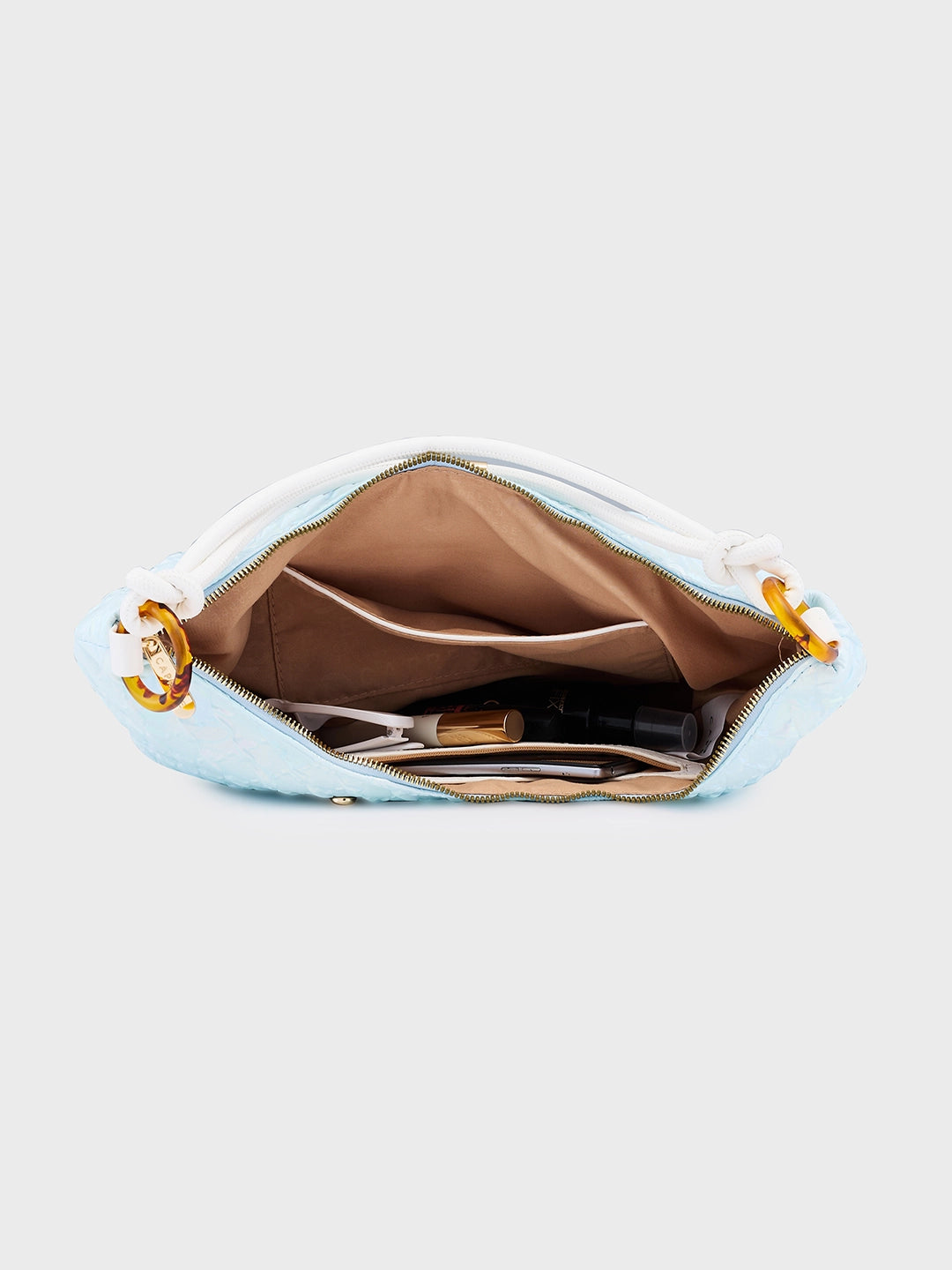 The spacious interior ensures ample room for all your essentials, seamlessly blending fashion and utility into a stylish, functional accessory.