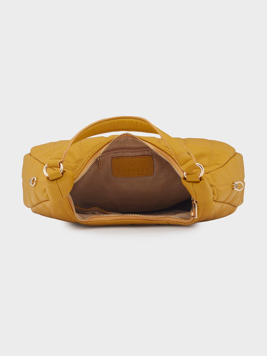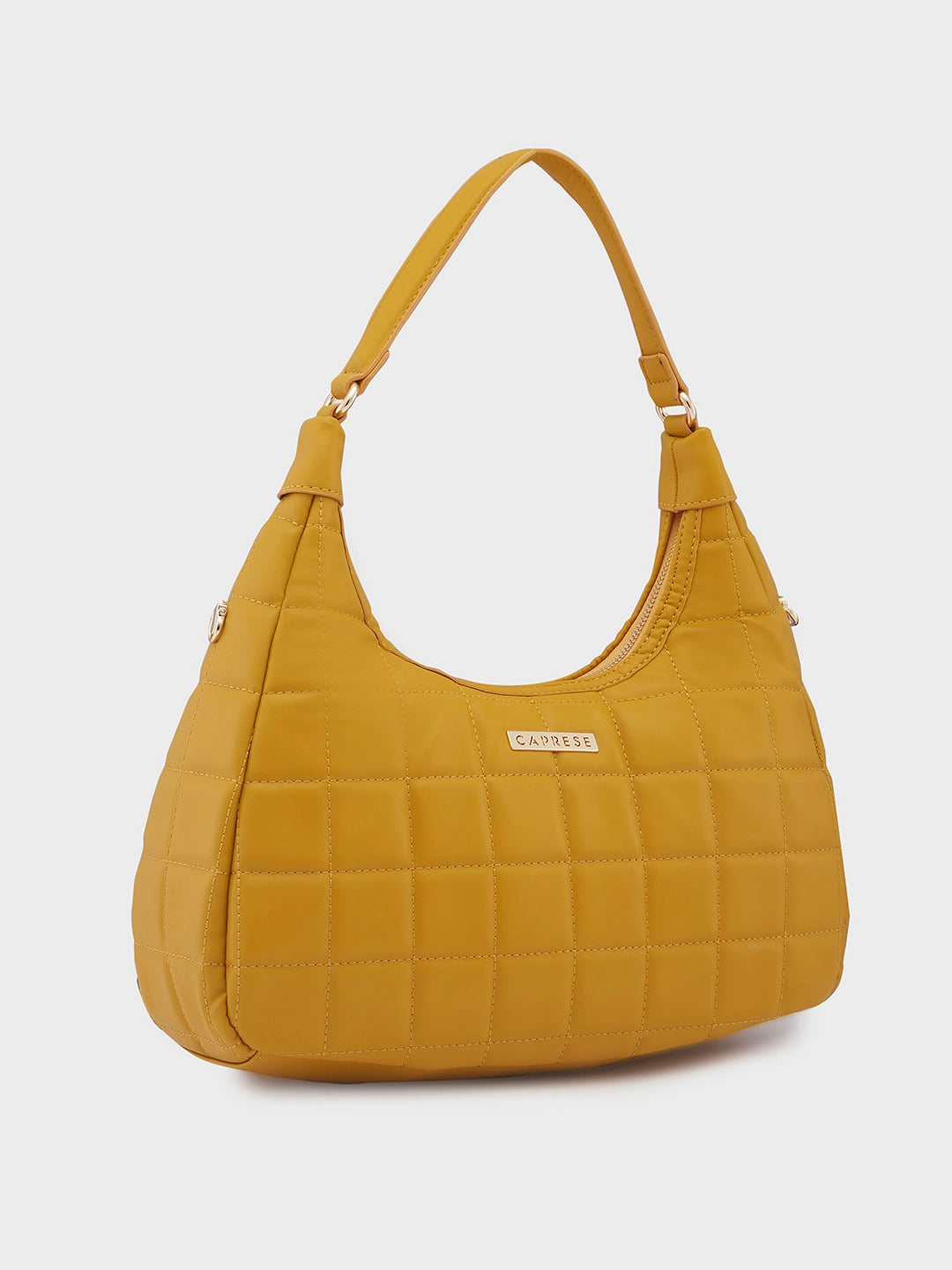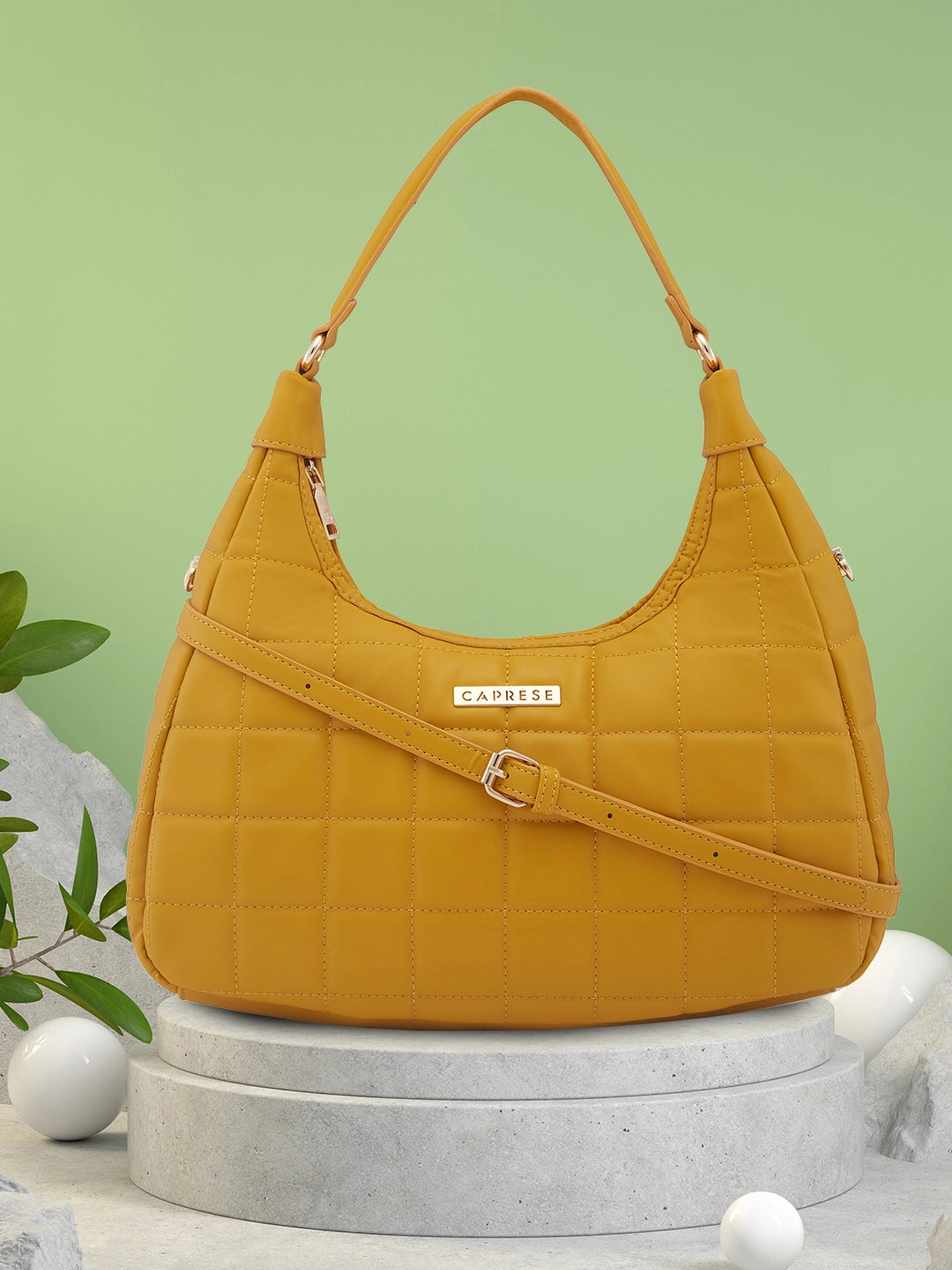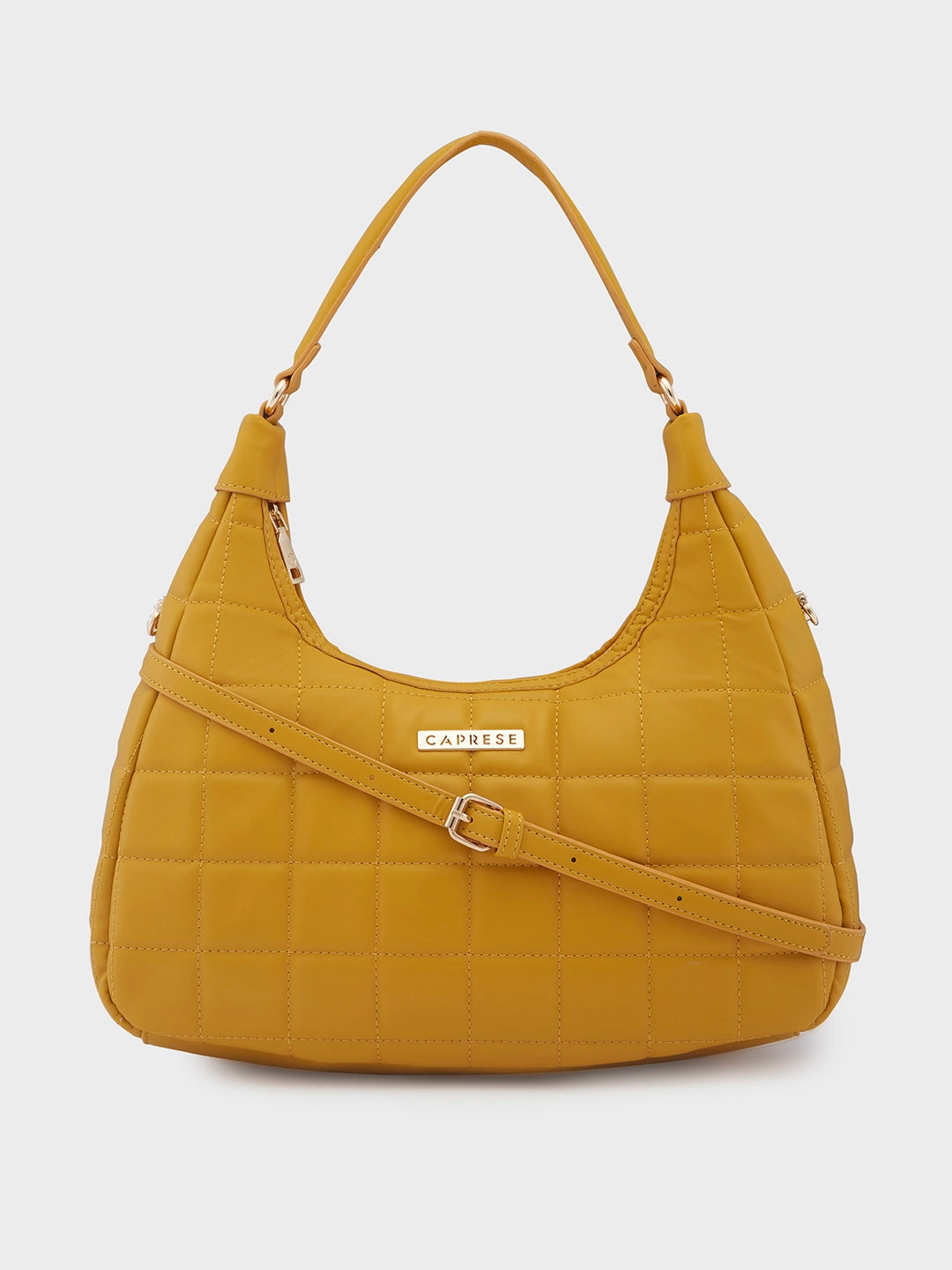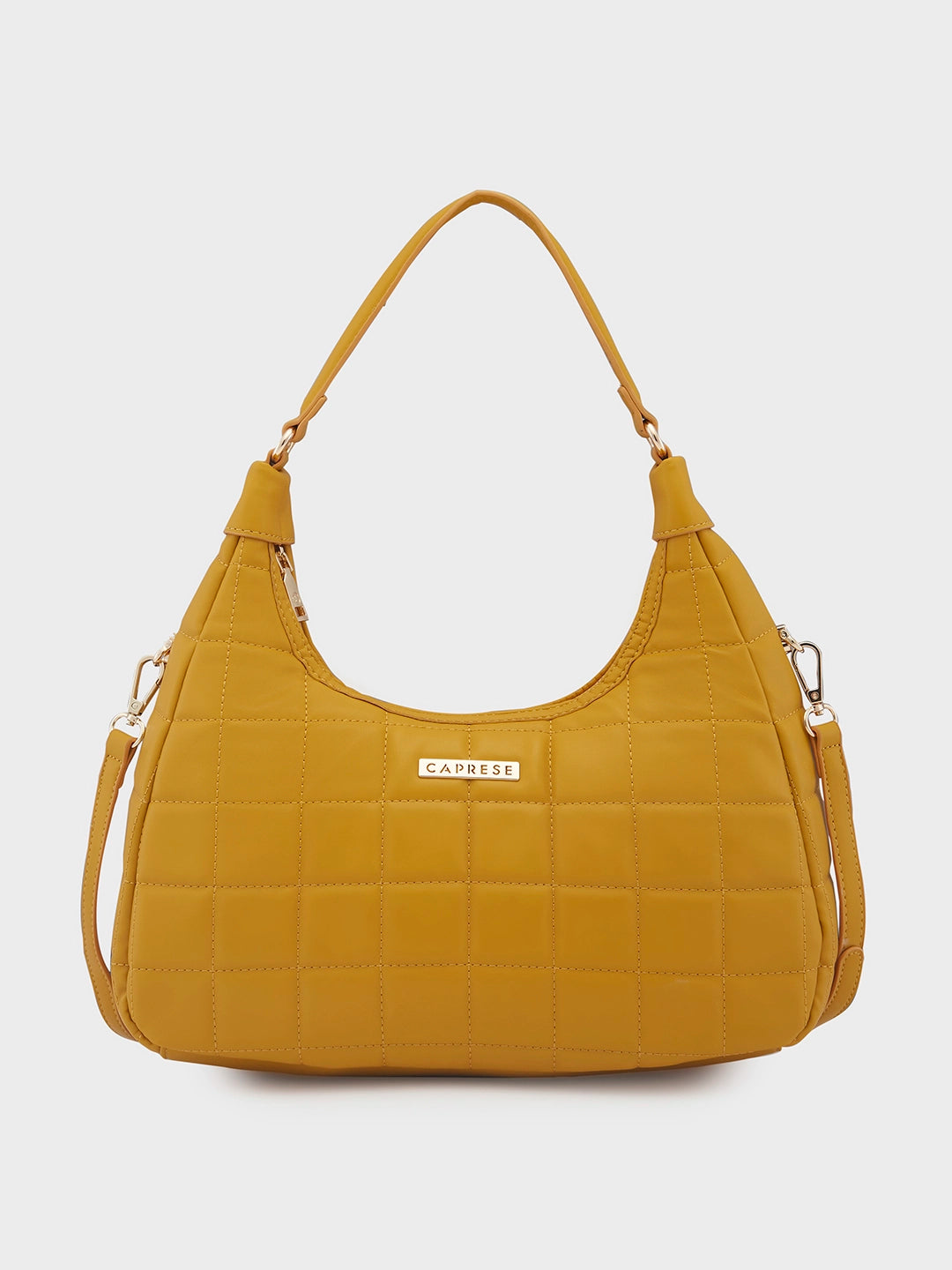 Introducing the Caprese Judy Hobo Handbag in Medium, a chic shoulder bag with a trendy new shape. This stylish hobo handbag features a spacious interior with a convenient back zip, perfect for keeping all your essentials organized. The bold black color adds a touch of sophistication to your outfit, making it ideal for office, daily use, and travel adventures. Combining elegance and functionality, this trendy handbag is designed to meet all your daily needs while ensuring you look chic and organized. Perfect for women seeking both style and practicality.