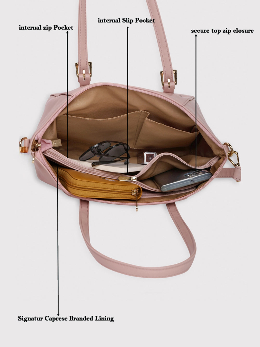 Caprese Kyle Medium Soft Pink Satchel Bag