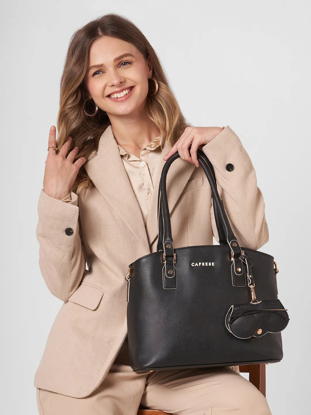 The Caprese Lexi Medium Satchel Bag blends modern functionality with timeless elegance, designed for today’s fashion-forward women. Crafted from premium solid faux leather, it features a sleek satchel silhouette that transitions seamlessly from office to outings. Equipped with an adjustable & detachable strap, it offers both shoulder and crossbody versatility. The secure zipper closure ensures safety for your essentials, while the external eyewear/sunglass charm case adds a smart and stylish utility feature. Compact yet spacious, this satchel easily accommodates your phone, wallet, cosmetics, and more. A must-have handbag for women who want chic looks with practical design—ideal for work, travel, and everyday wear.