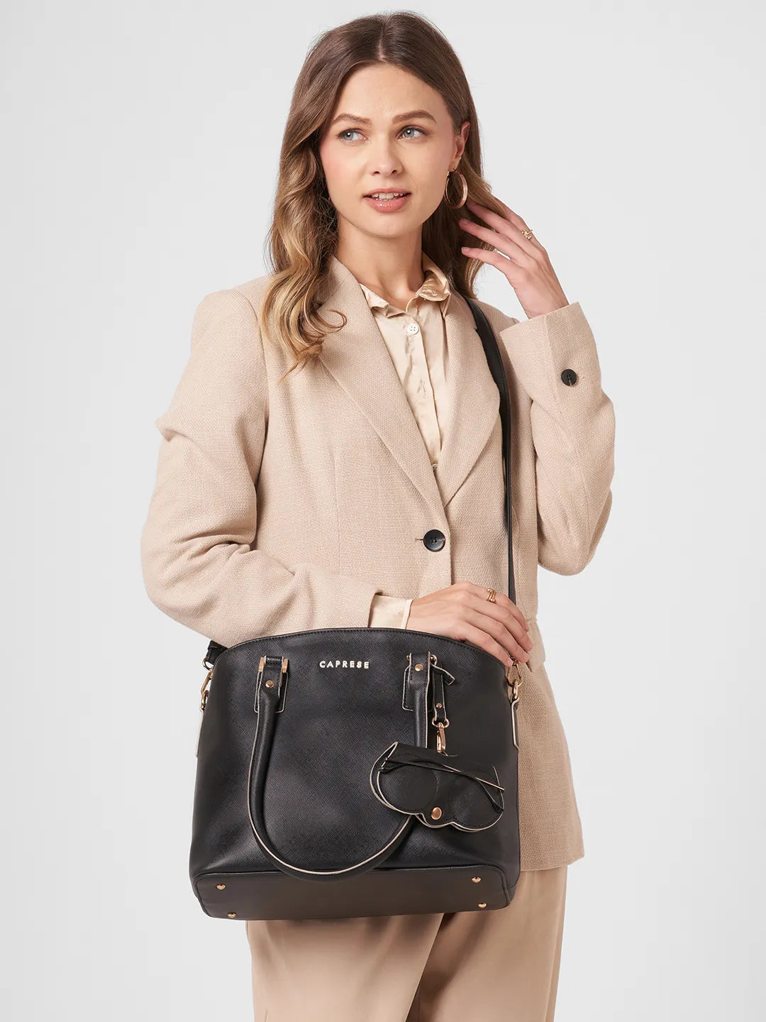 Caprese Lexi Medium Black Satchel Bag