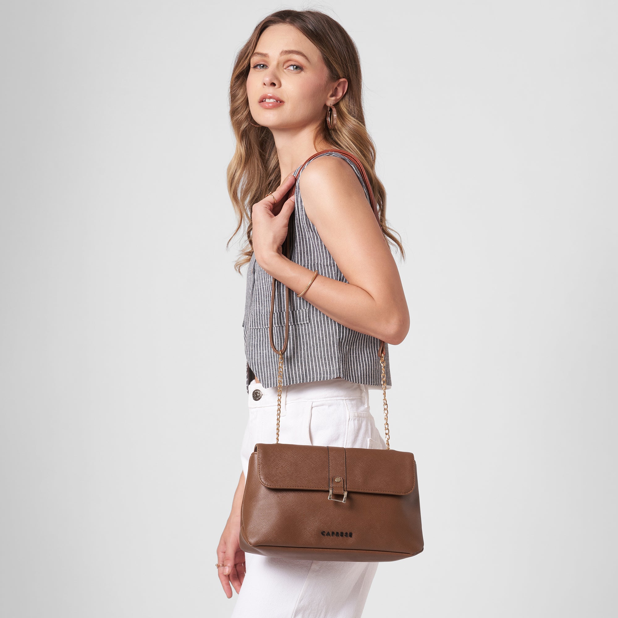 Upgrade your everyday style with the Caprese Lexi Medium Sling Bag, a chic blend of fashion and utility. Made with premium solid faux leather, this sling is lightweight yet durable—perfect for carrying your daily essentials like phone, wallet, keys, and makeup. Featuring an adjustable strap, it can be styled as a crossbody for comfort or as a shoulder bag for a sleek look. The dual closure system with zipper & magnetic button ensures both security and easy access to your belongings. Whether you’re heading to the office, college, a brunch, shopping, or travel, the Lexi Sling adds a touch of elegance to every outfit.