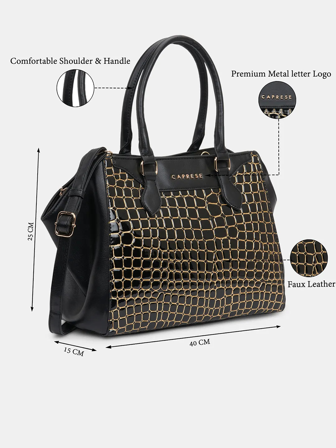 Step out in style with the Caprese Lily Large Satchel, crafted from premium croc-embossed faux leather for a chic, sophisticated, and durable finish. Designed for modern women, this versatile satchel features multiple compartments to keep essentials like wallet, phone, keys, makeup, and documents organized. The adjustable and detachable strap allows for carrying as a handheld bag or shoulder bag, providing comfort and flexibility. With a secure zipper closure, your belongings stay protected while maintaining an elegant look. Perfect for office, shopping, travel, or casual outings, the Lily Satchel Large blends fashion with functionality effortlessly.