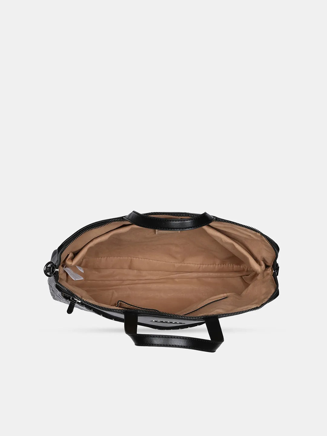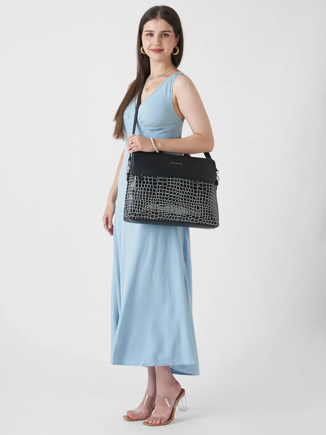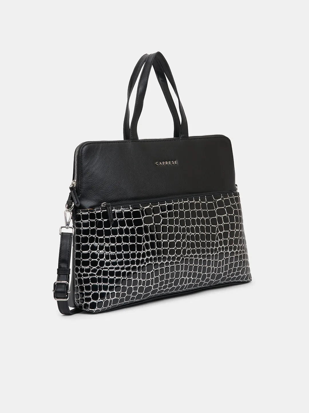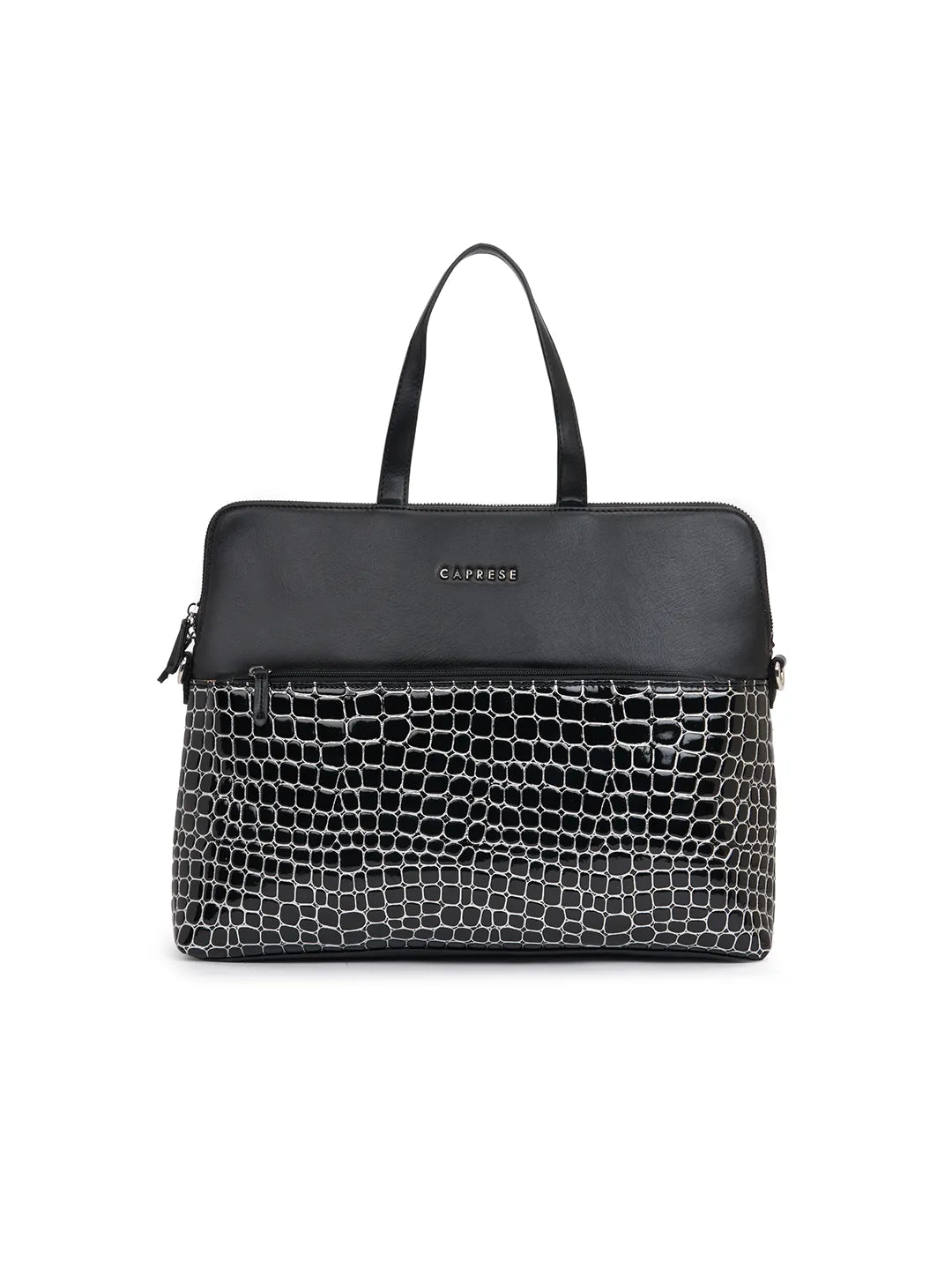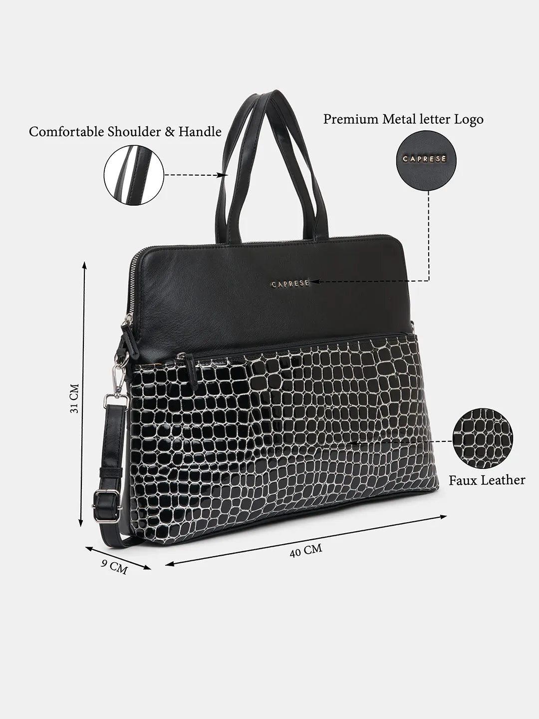 Upgrade your work and travel style with the Caprese Lily Large Laptop Bag, crafted from premium croc-embossed faux leather for a sleek and professional look. This versatile bag features multiple compartments, including 2 external pockets and a dedicated laptop sleeve, keeping your laptop, documents, wallet, and essentials organized. The adjustable and detachable strap allows carrying as a handheld bag or shoulder bag with comfort and ease. With a secure zipper closure, your belongings stay safe while maintaining elegance. Perfect for office, business trips, or daily use, the Lily Laptop Bag Large blends functionality with high-end fashion.