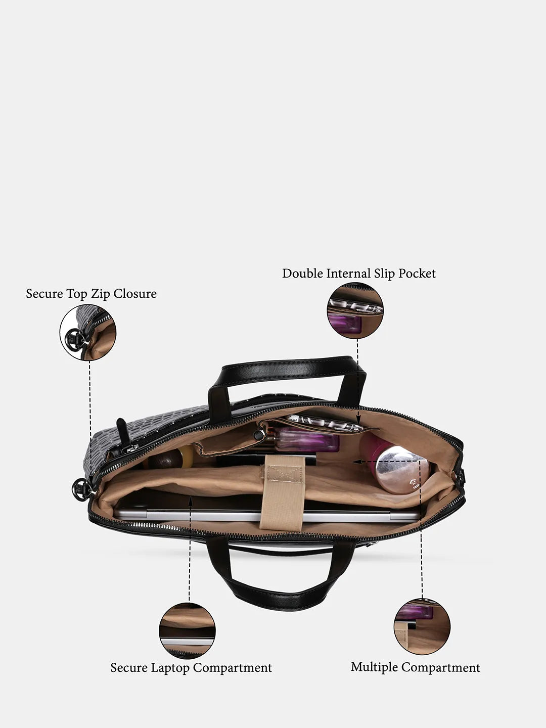 Croc-Embossed Faux Leather: Durable and stylish material with a premium, professional finish.