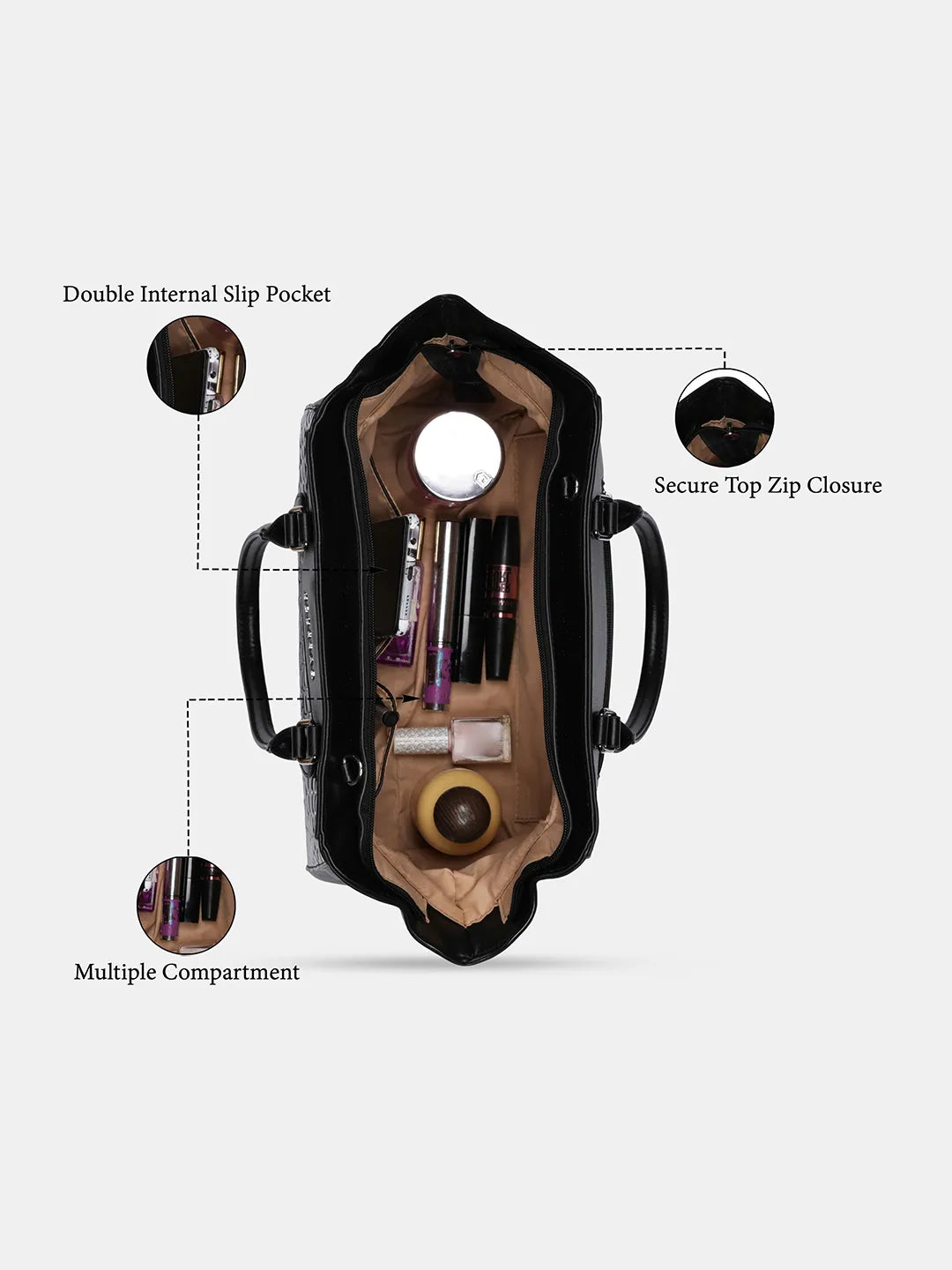 Secure Zipper Closure: Protects belongings while maintaining a chic and sophisticated style.