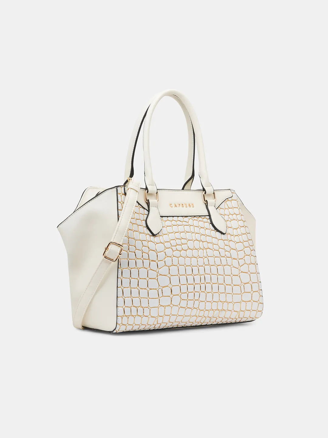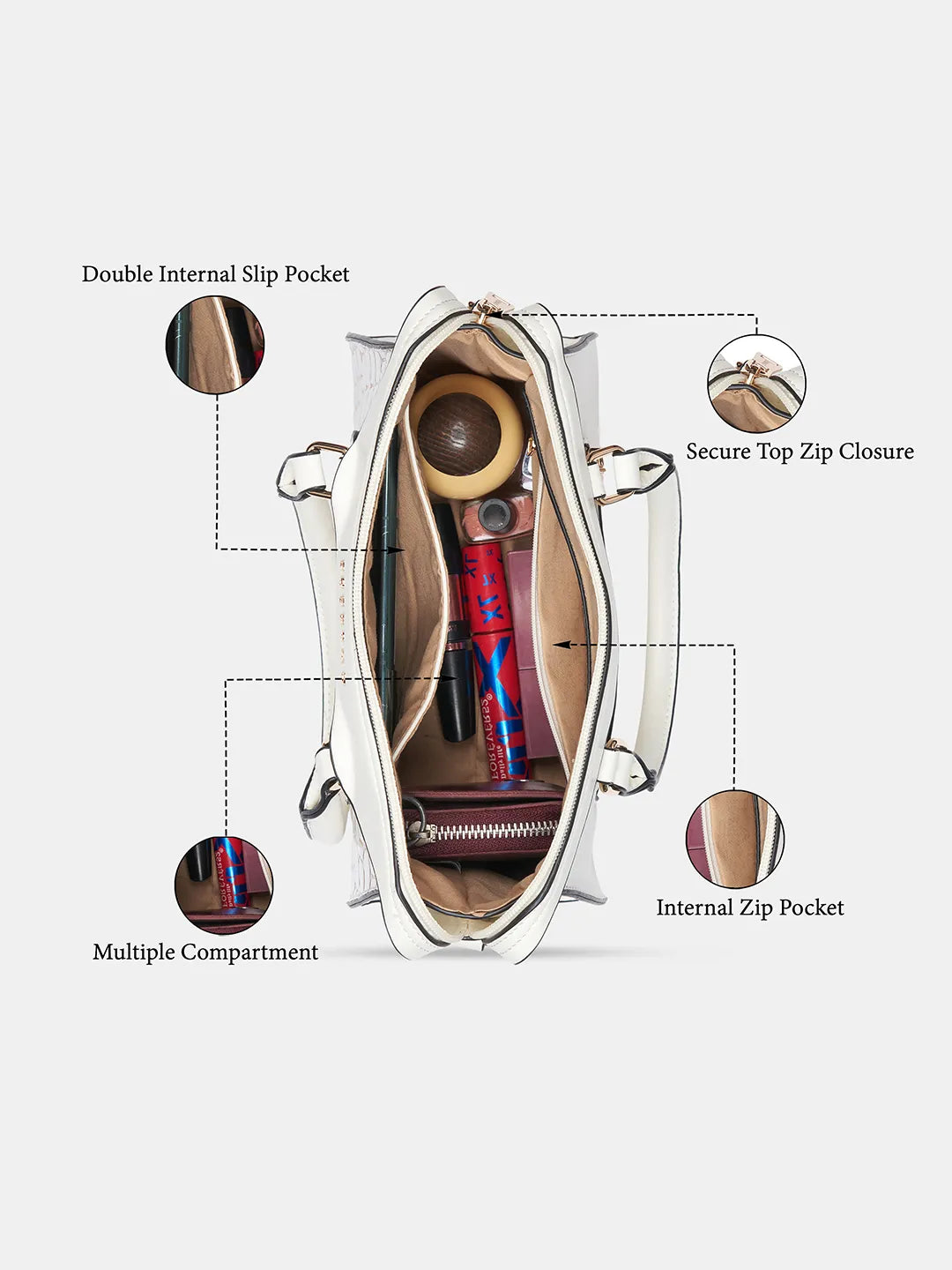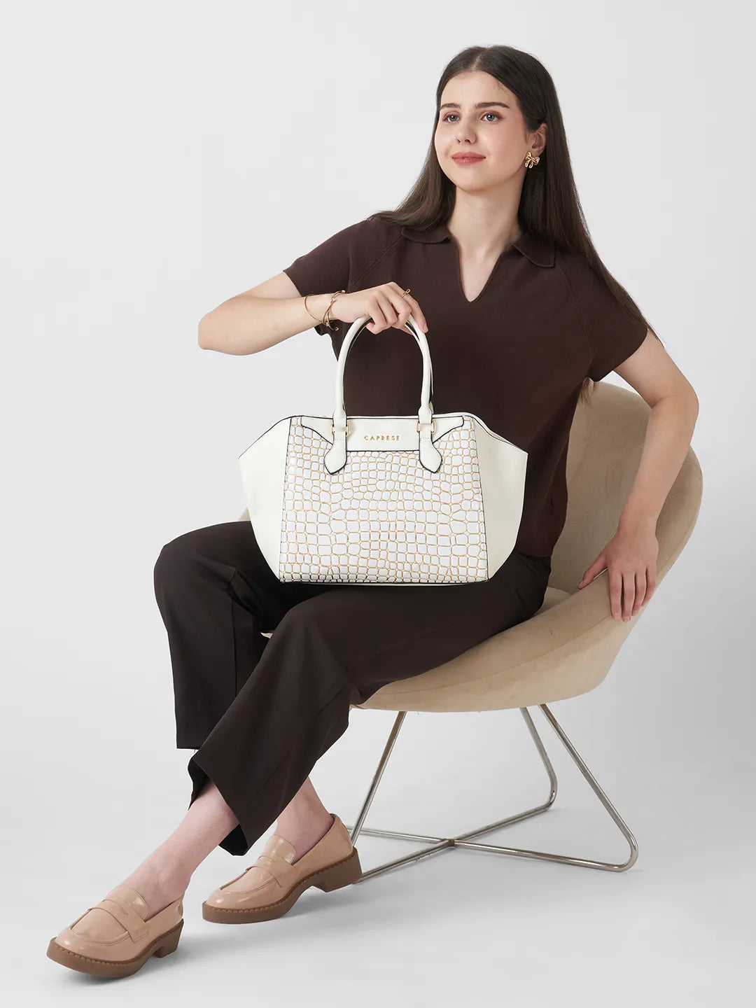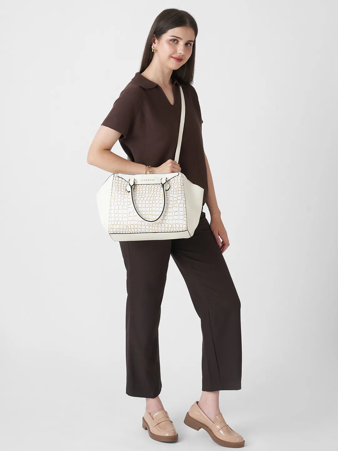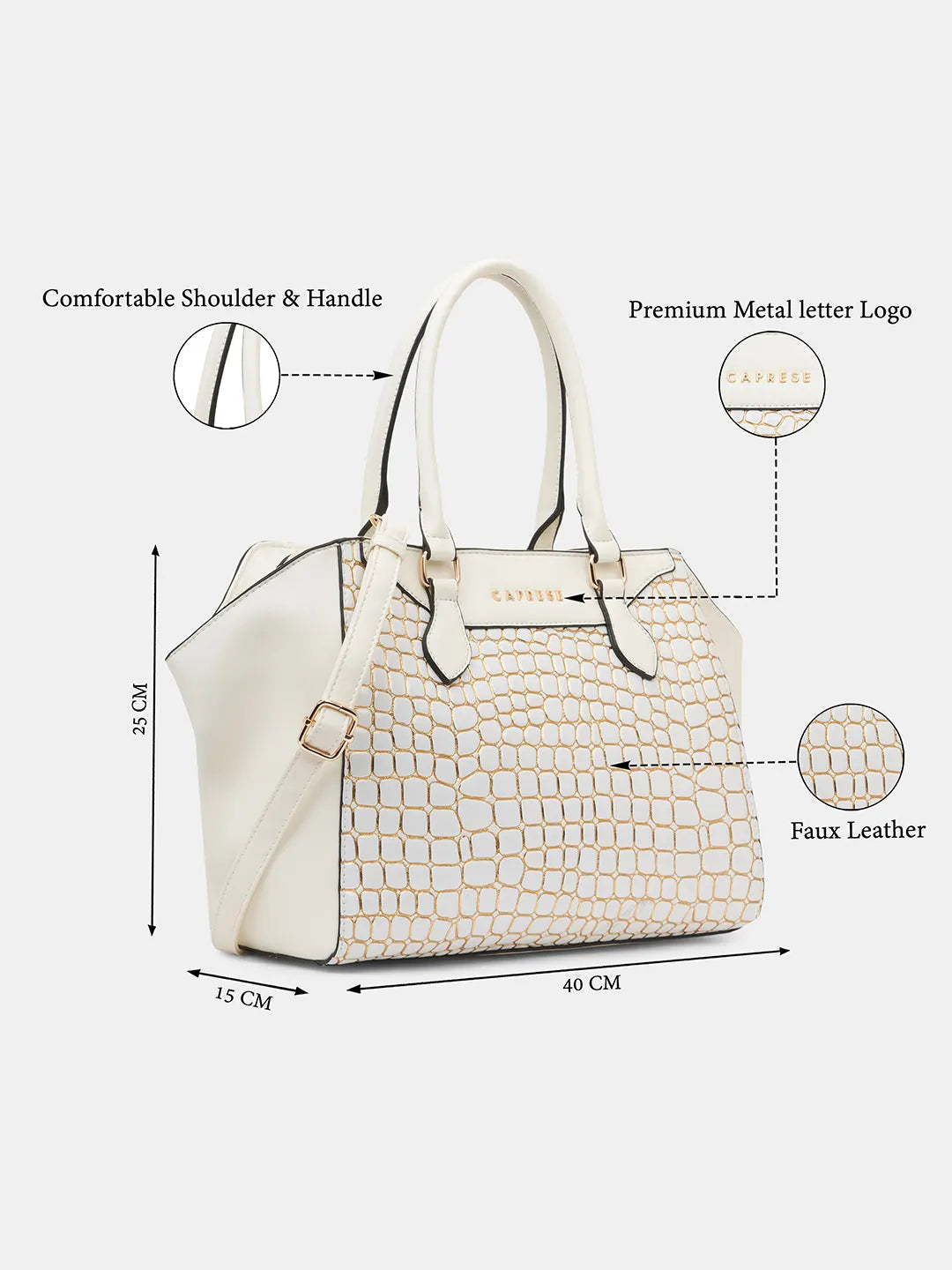 Step out in style with the Caprese Lily Large Satchel, crafted from premium croc-embossed faux leather for a chic, sophisticated, and durable finish. Designed for modern women, this versatile satchel features multiple compartments to keep essentials like wallet, phone, keys, makeup, and documents organized. The adjustable and detachable strap allows for carrying as a handheld bag or shoulder bag, providing comfort and flexibility. With a secure zipper closure, your belongings stay protected while maintaining an elegant look. Perfect for office, shopping, travel, or casual outings, the Lily Satchel Large blends fashion with functionality effortlessly.