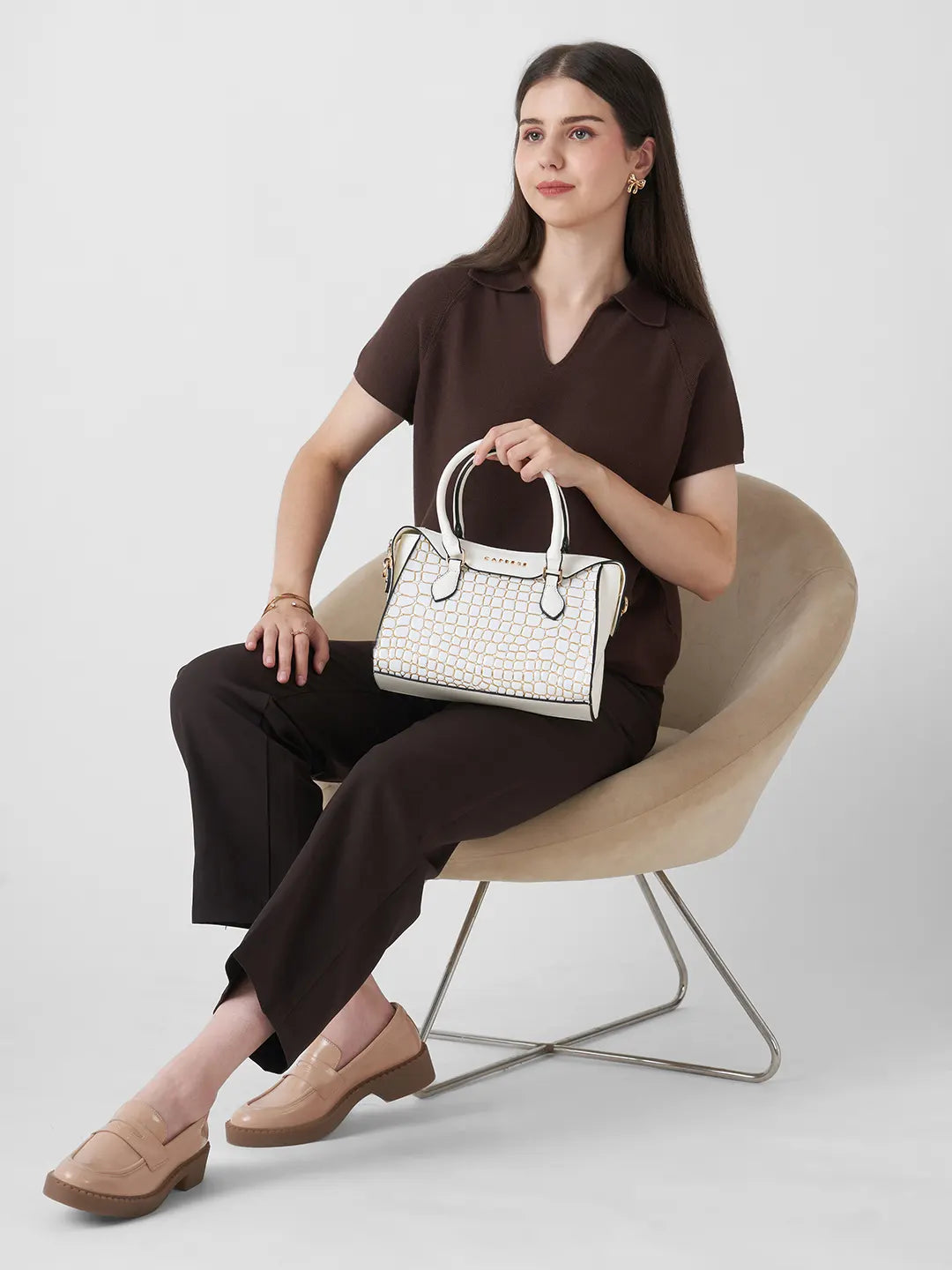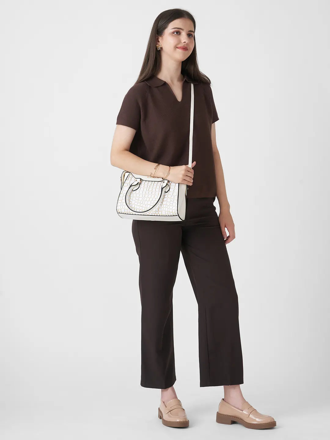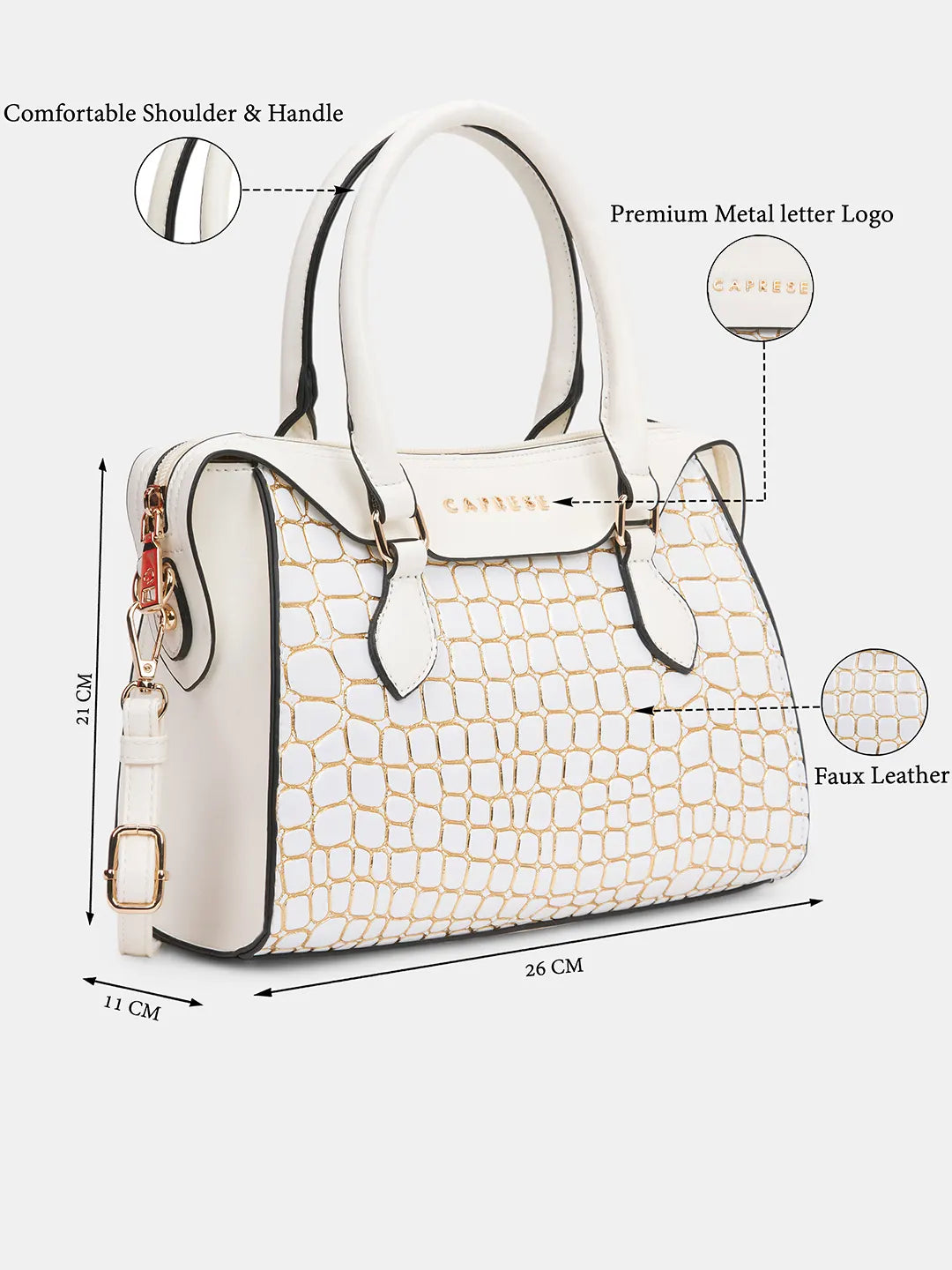 Elevate your style with the Caprese Lily Small Satchel, crafted from premium croc-embossed faux leather for a chic and sophisticated look. Designed for modern women, this versatile satchel features multiple compartments to keep essentials like wallet, phone, keys, and makeup organized. The adjustable and detachable strap allows you to carry it as a shoulder bag or handheld bag, providing flexibility and comfort. With a secure zipper closure, your belongings remain safe while you step out in style. Perfect for office, casual outings, shopping, or travel, the Lily Satchel Small blends fashion with functionality effortlessly.