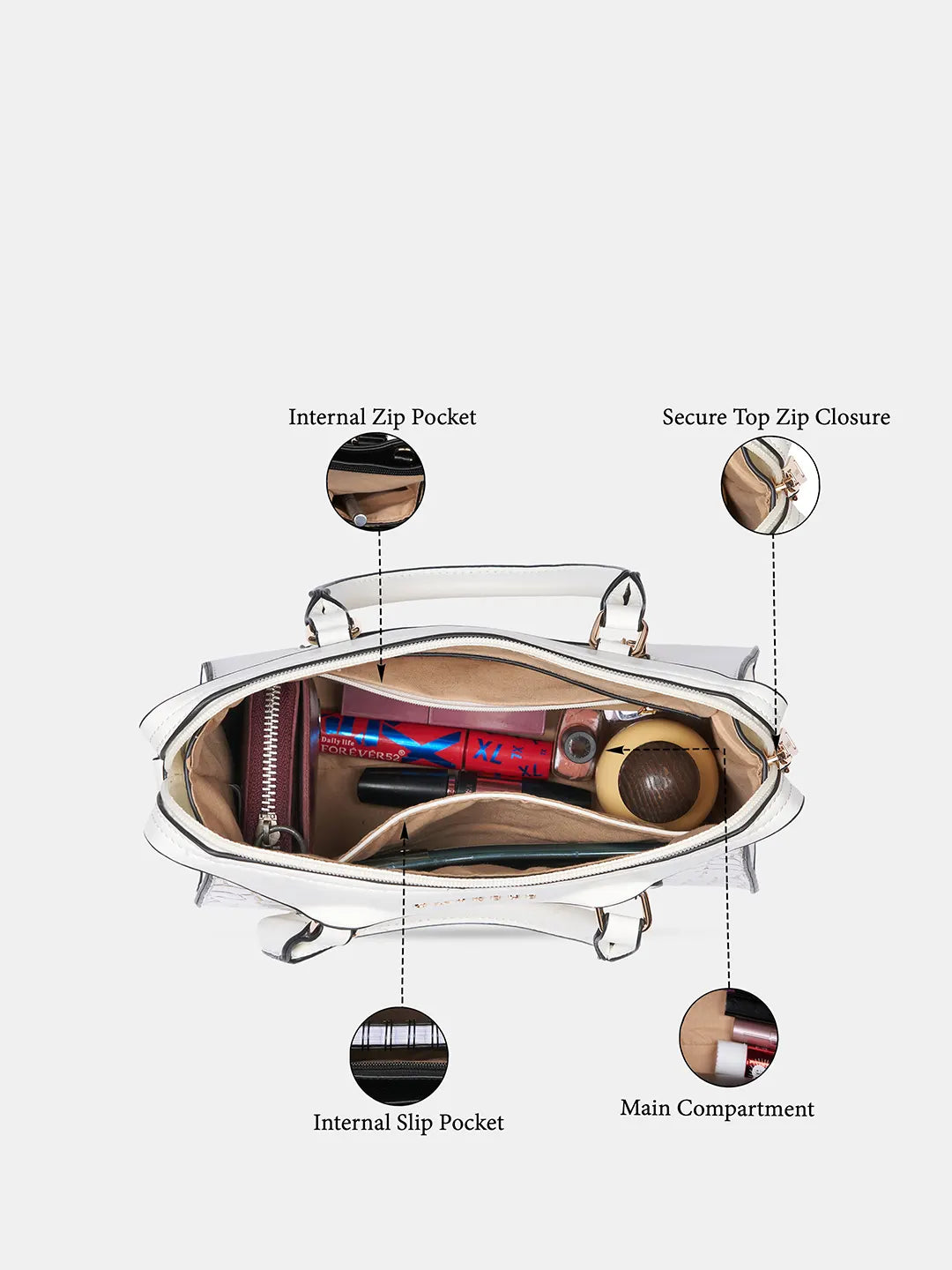 Secure Zipper Closure: Ensures safety of belongings while maintaining a chic and elegant style.