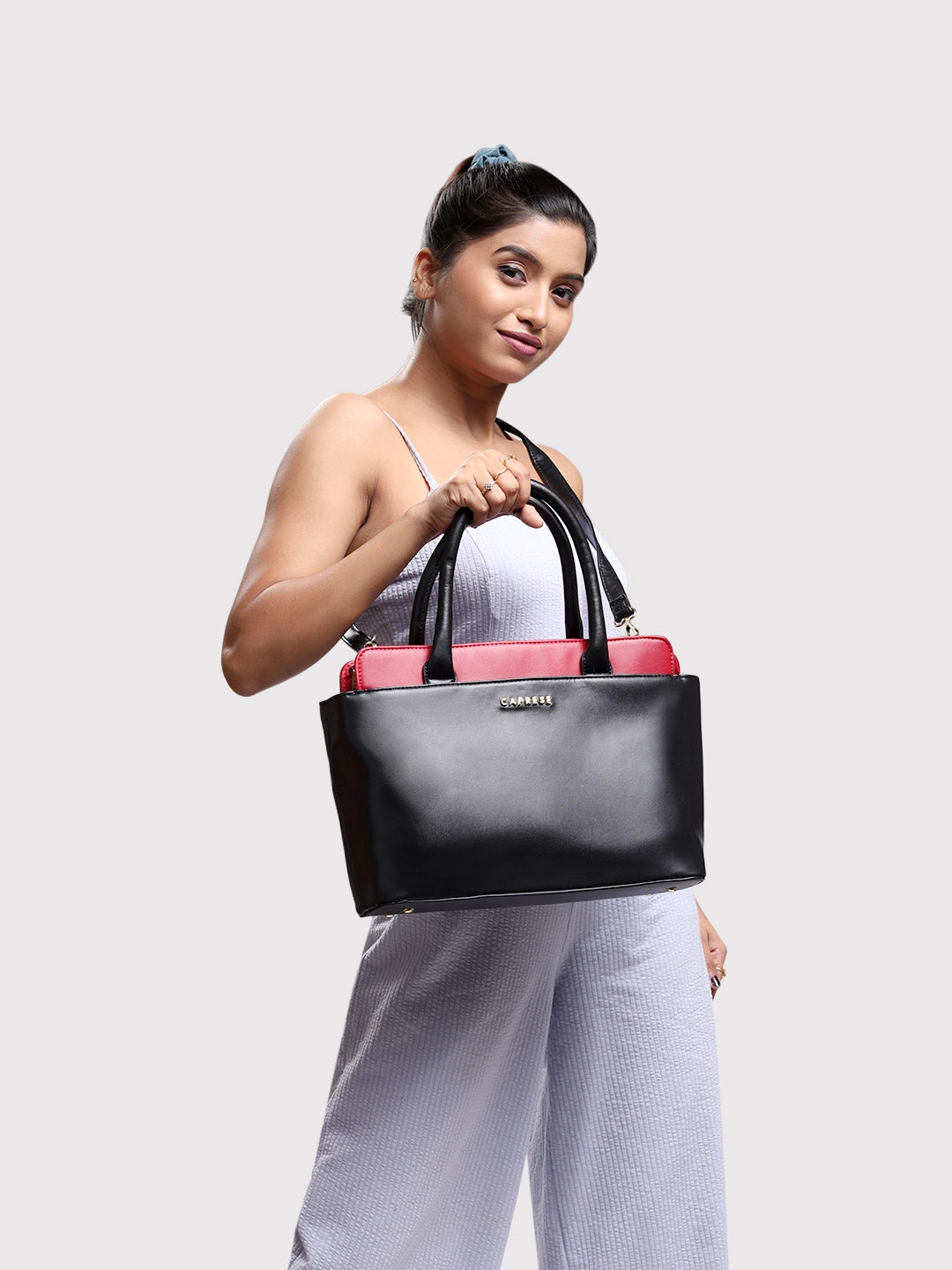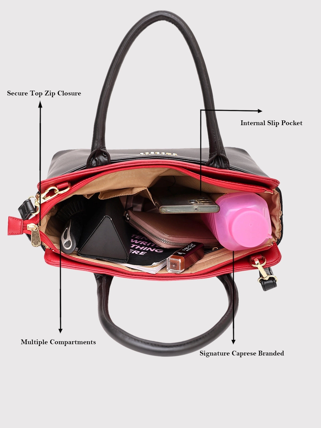 Introducing the Caprese Lizzy Satchel Medium Solid Women's Handbag—a perfect blend of style and functionality for the modern woman. Crafted with meticulous attention to detail, this medium-sized satchel offers ample space to organize your essentials without compromising on elegance. Its solid color design exudes timeless sophistication, making it versatile enough for both professional and casual settings. Whether you're heading to the office or out for a leisurely day of errands, the Caprese Lizzy Satchel adds a touch of refinement to any ensemble. With its classic silhouette and durable construction, this handbag is sure to become a staple in your wardrobe, effortlessly elevating your everyday look with understated charm.