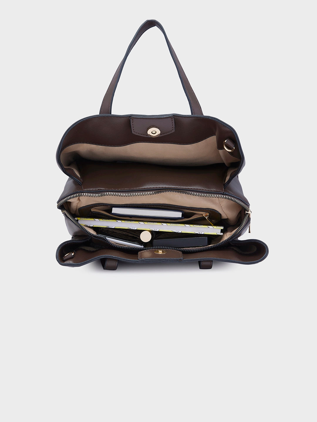 Introducing The Lucie Satchel Medium In Rich Brown, A Chic Shoulder Bag Designed For The Modern Woman. This Trendy Handbag Features A Spacious Interior With A Convenient Back Zip, Perfect For Keeping Your Essentials Organized. Its Fresh And Bold Color Makes It Ideal For The Office, Casual Outings, Or Travel Adventures. Combining Style And Functionality, This Handbag Ensures You Look Effortlessly Chic While Meeting All Your Daily Needs. Elevate Your Accessory Collection With This Versatile Satchel, Perfect For Those Seeking Both Elegance And Practicality In Their Handbags.