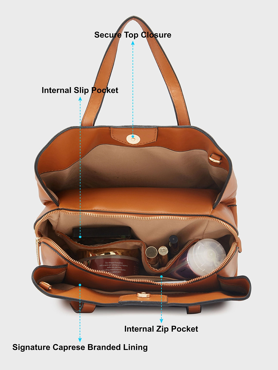 Caprese Lucie Medium Tan Satchel Bag