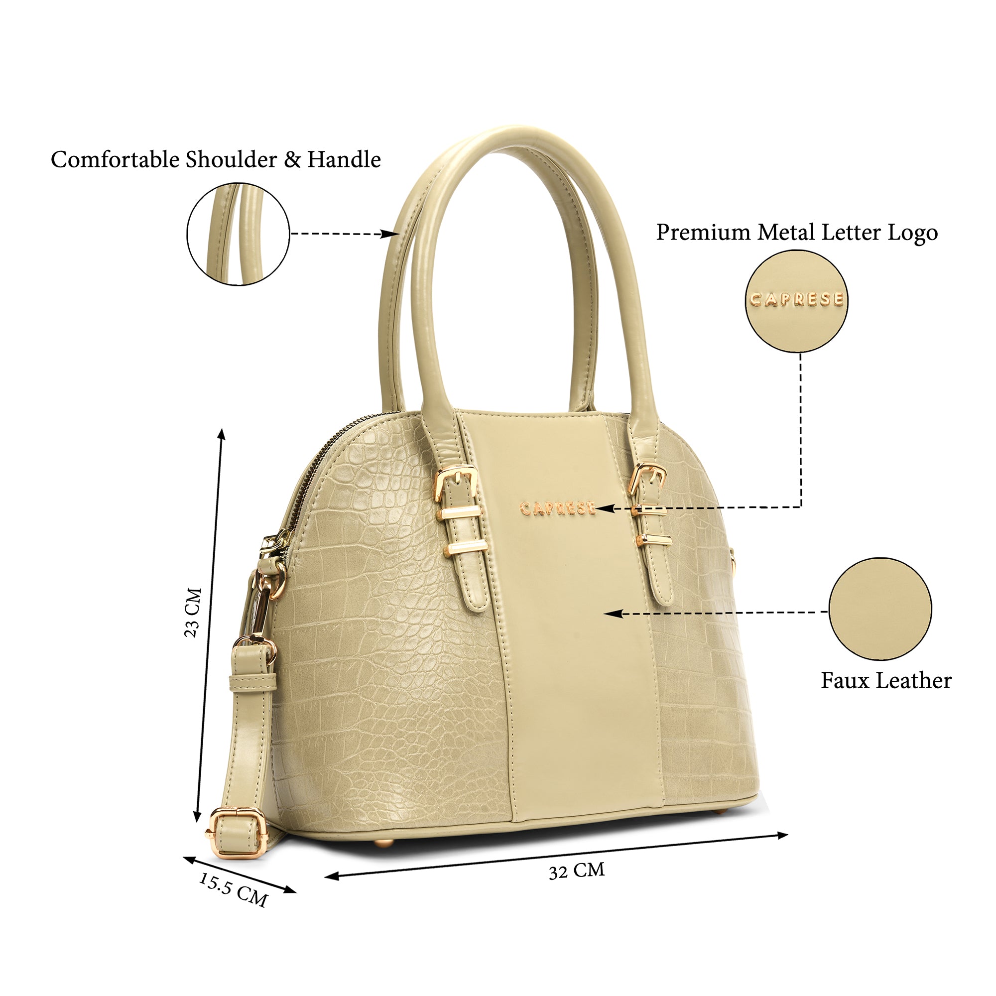 The Caprese Macie Medium Satchel is the ultimate blend of style and functionality for modern women. Crafted from premium textured faux leather, this handbag adds a touch of sophistication to every outfit. The adjustable & detachable strap offers multiple styling options – carry it as a satchel, shoulder bag, or crossbody according to your mood. Designed with a secure zipper closure, it keeps all your essentials safe while giving you quick access on the go. Spacious yet chic, this satchel is perfect for office, travel, brunch, shopping, or casual outings. With its versatile design, the Caprese Macie Satchel is a must-have addition to your everyday collection.
