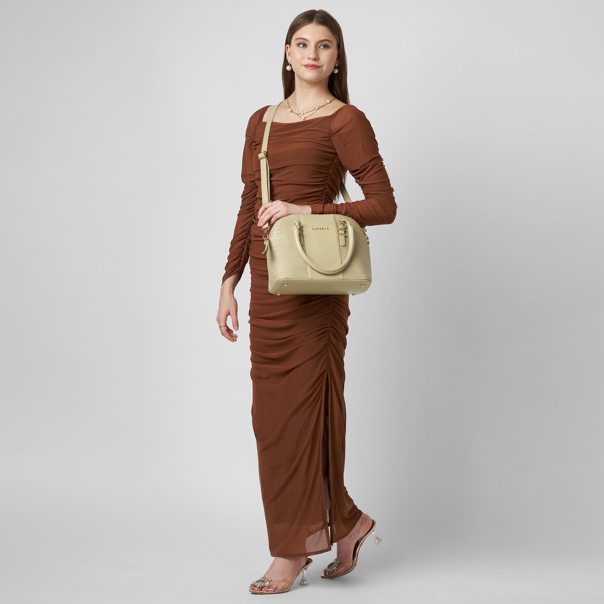 Caprese Macie Medium Alpine Oat Satchel Bag