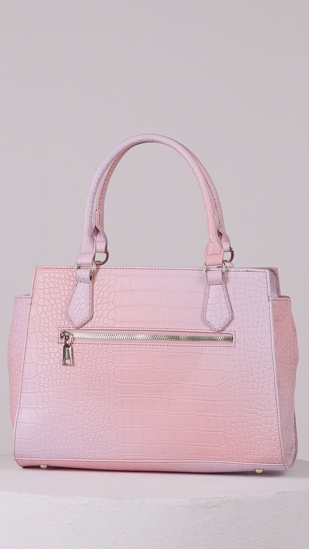 Embrace delicate charm with the Caprese Marilyn Satchel Medium, a sophisticated and stylish handbag designed to elevate your everyday look. This elegant satchel features a beautiful Peach ombre effect, subtly transitioning from a lighter to a darker hue, all enhanced by a luxurious crocodile texture. Gold-tone hardware and a unique detachable Caprese flower charm, adorned with a gold "C" logo, add a touch of refined elegance.
