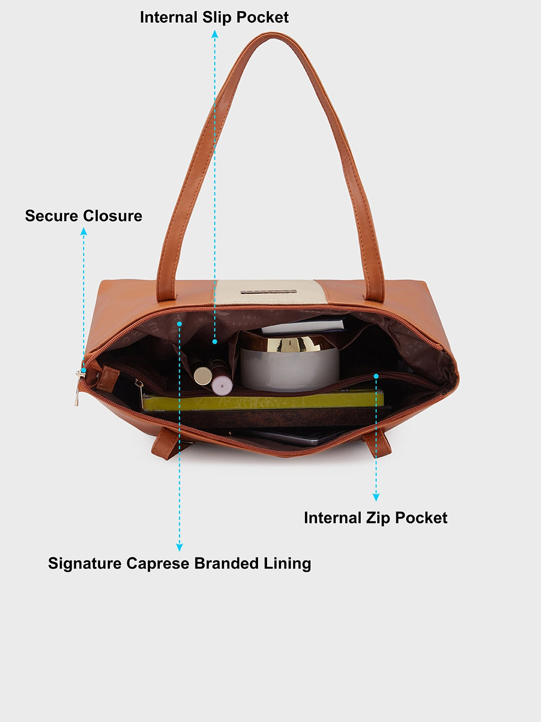 Stay organized with the easy access back pocket of the Caprese Handbag. This feature is perfect for essentials, making it an ideal office bag or college bag. Designed as a laptop bag for women handbag, it ensures quick access to your essentials, keeping you prepared on the go.