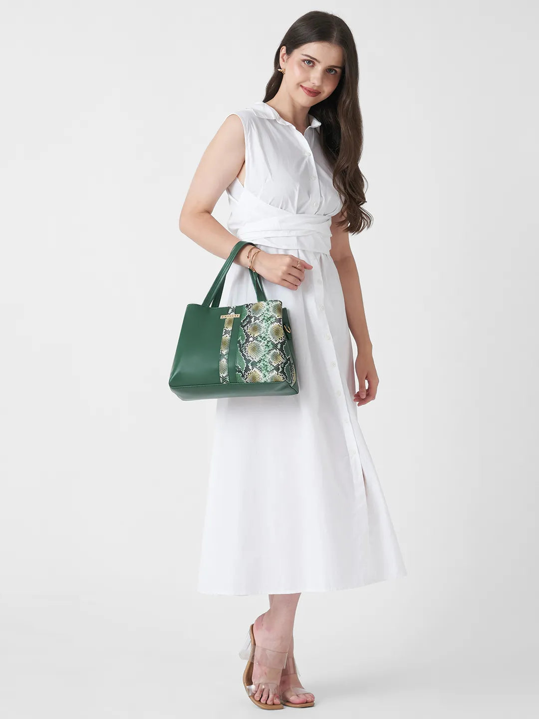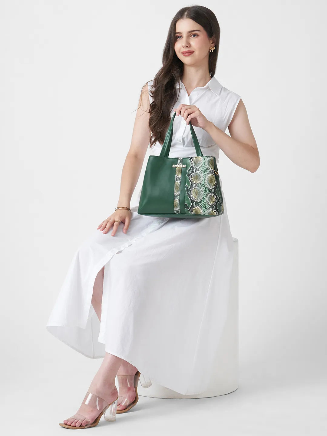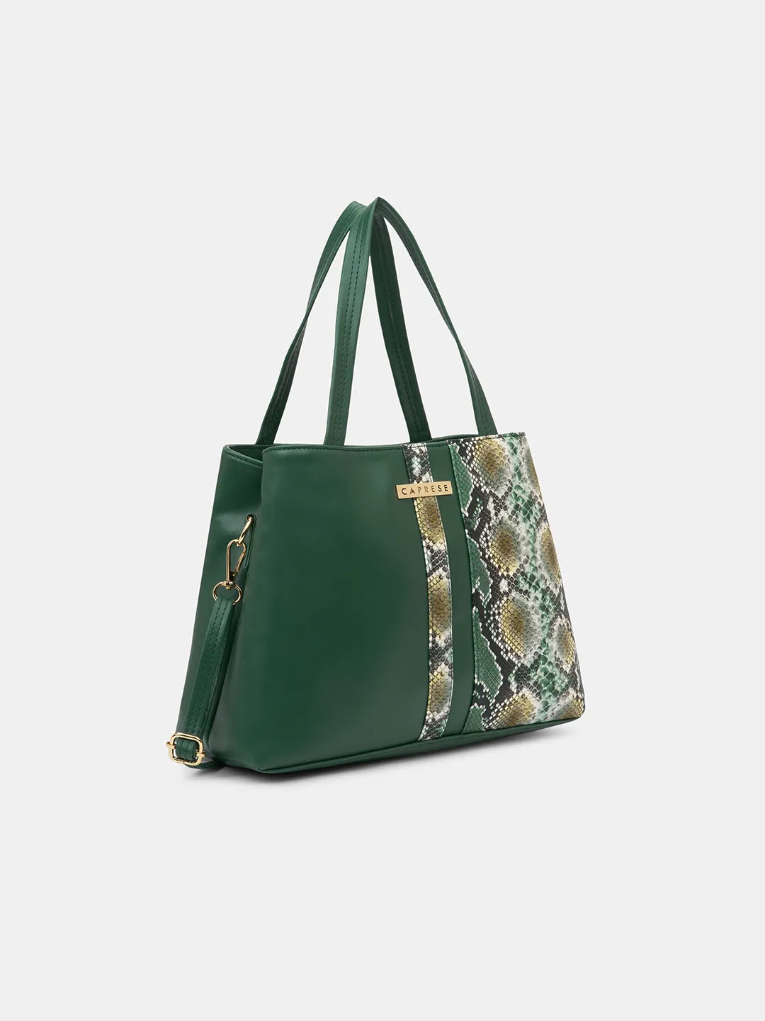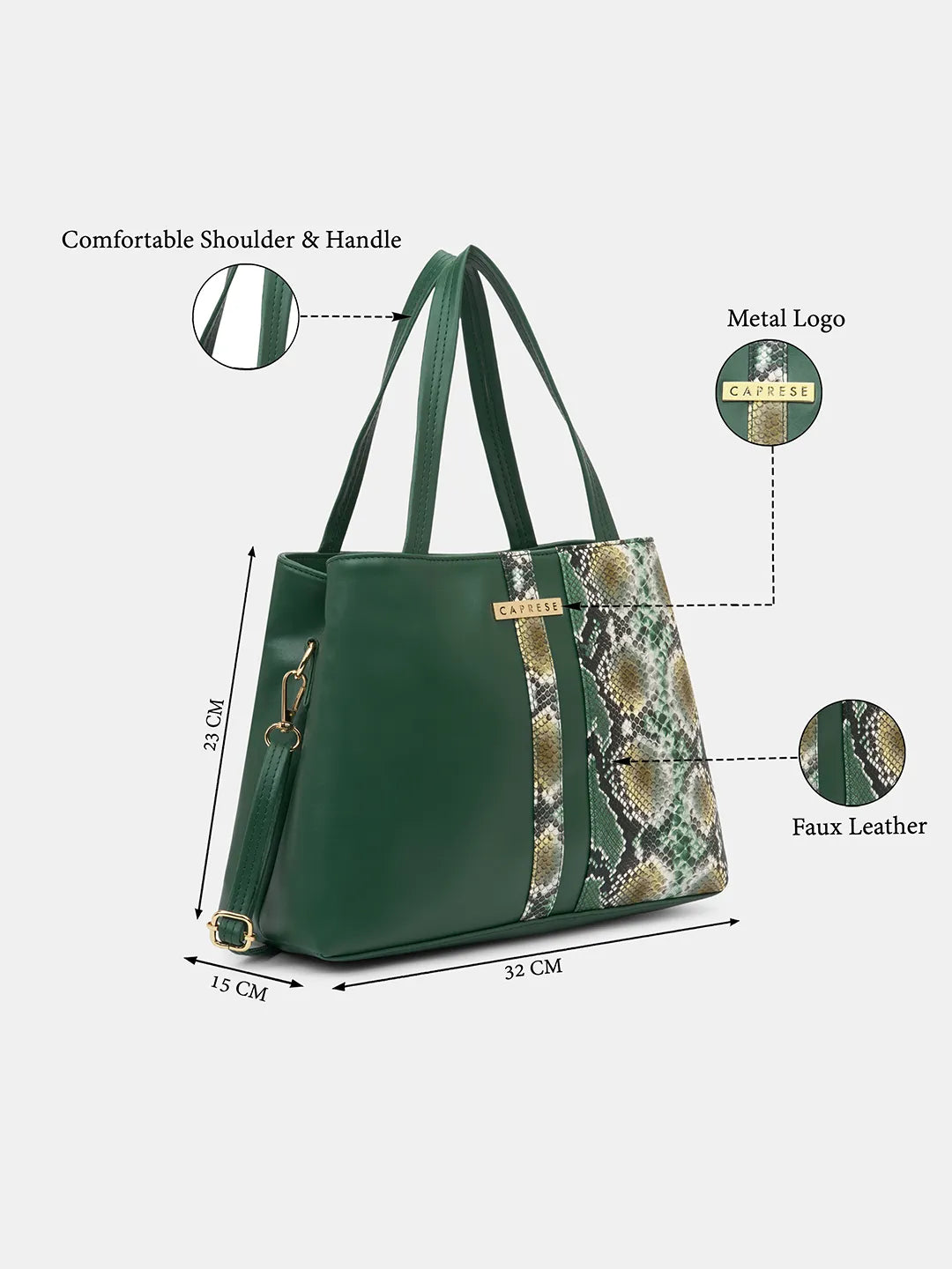 Introducing the Caprese Satchel bag for women, a sleek and stylish handbag featuring a luxurious croco finish. This shoulder bag is perfect for office use and daily activities, providing ample space for all your essentials. With multiple compartments, it ensures excellent organization and easy access to your items. The detachable, adjustable shoulder strap adds versatility, making it a must-have accessory for any occasion. Elevate your style with this fashionable and functional office bag.