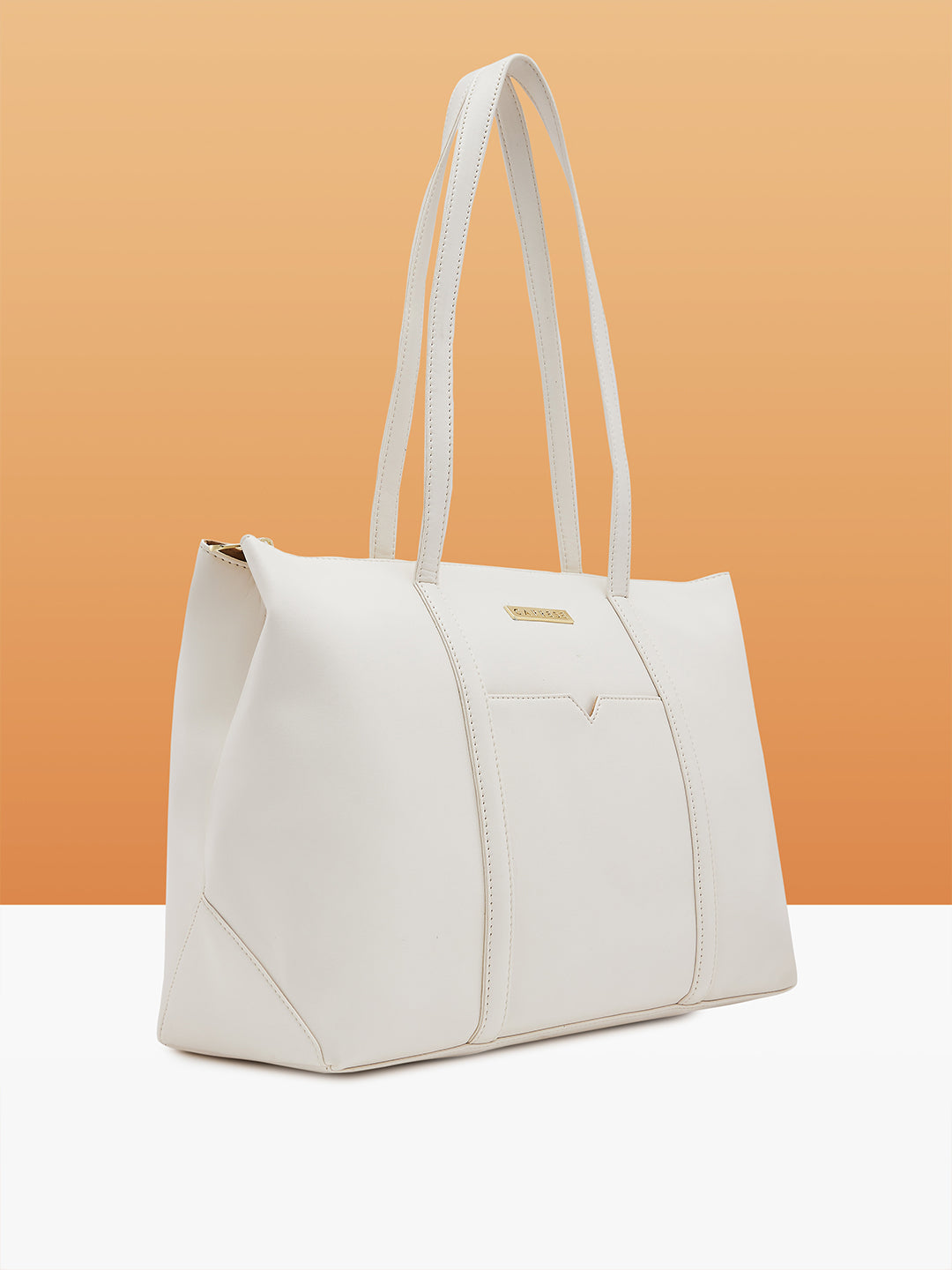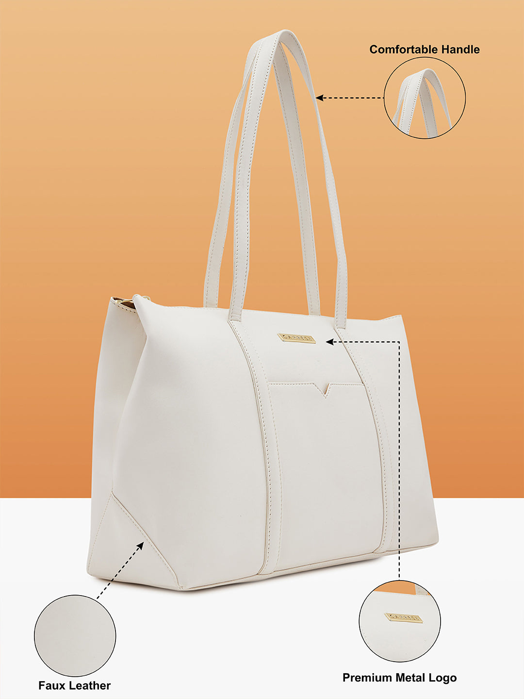Introducing the Pattie Tote Large Off White, a sleek and stylish handbag designed to fit up to 15 inches. Perfect for office or daily use, this tote features bold solid colors and multiple compartments to keep all your essentials organized. The front slip pocket allows for quick access, while the detachable adjustable sling strap adds convenience. Combining style and functionality, this chic handbag meets all your daily needs, ensuring you stay organized and fashionable. Ideal for women seeking a versatile office bag or shoulder bag.