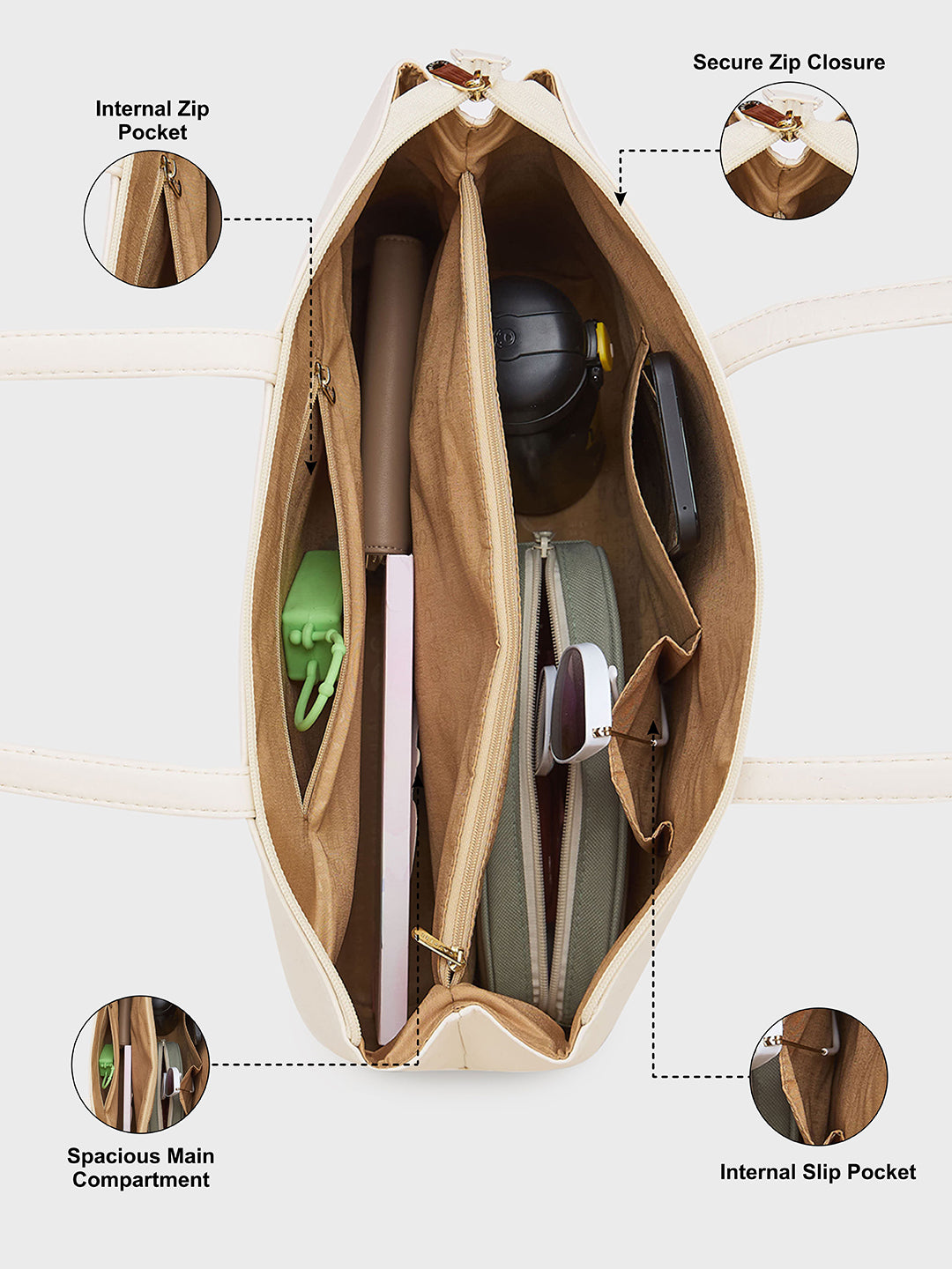 The internal zip pocket helps organize all your essentials for office and daily use. Whether you need a reliable office bag or a functional college bag, this handbag for women ensures your items are neatly stored and easily accessible. A must-have for women on the go, combining convenience with elegance.