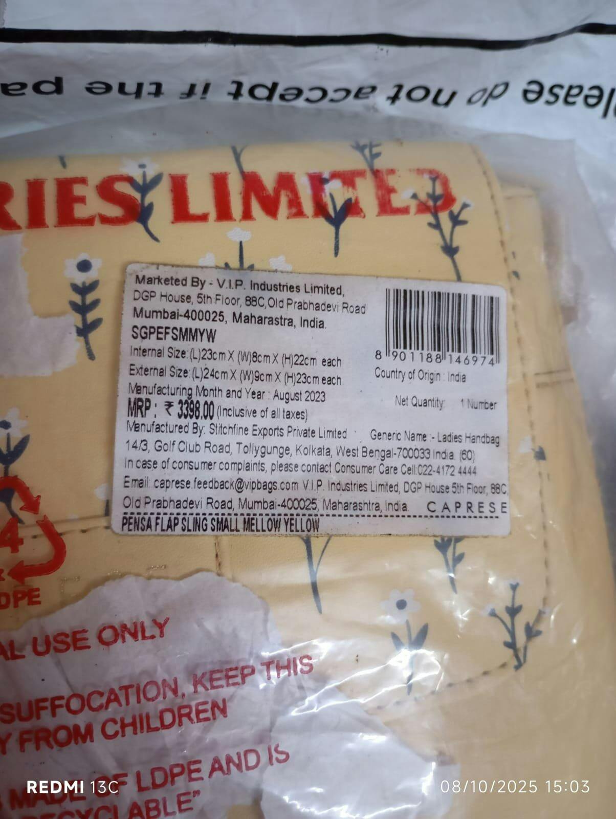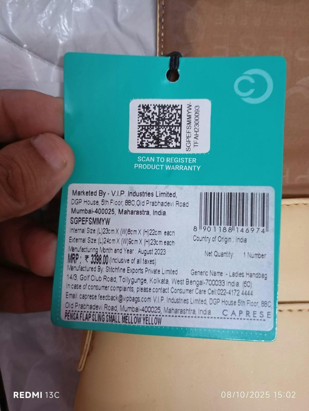 1. We're here for you: Report any damaged shipment within 36 hours via 'My Account' section or reach out anytime at 022-41724444 or via email: hellogirl@capresebags.com with order details, and we'll swiftly assist you. Enjoy a 3-day return window, just ensure your item is in top shape with original packaging and receipt.