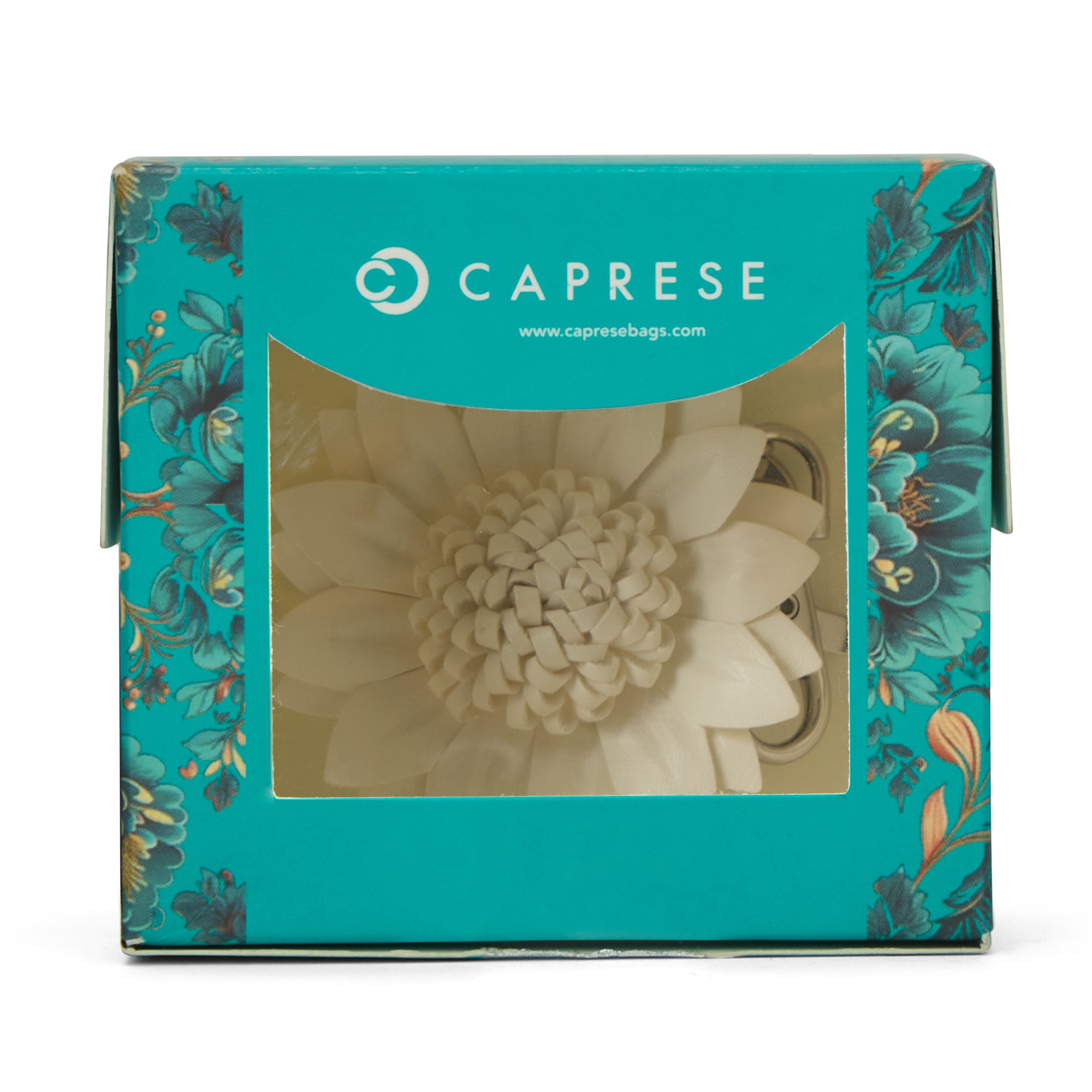 Elevate your handbag with the stylish and practical Caprese Dahlia Flower Purse Hook & Bag Charm. Crafted from durable Zinc Alloy with a charming White PU Dahlia flower design, this accessory is the perfect blend of fashion and function.